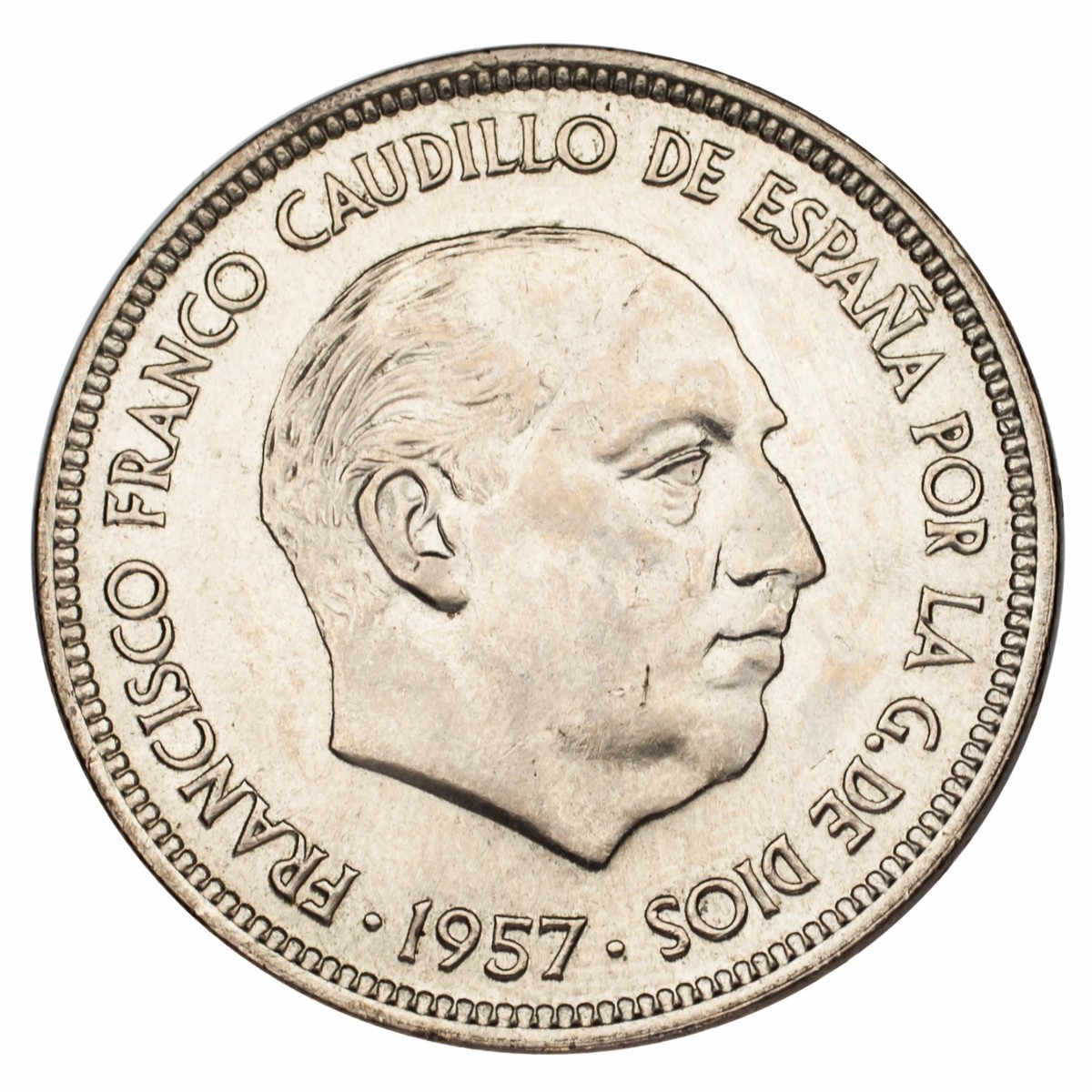 1957 (71) Spain 50 Pestesas Uncirculated Condition KM #778