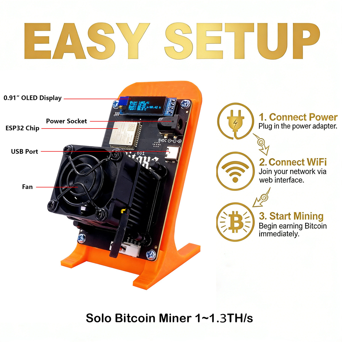 Built-in OLED display for real-time stats