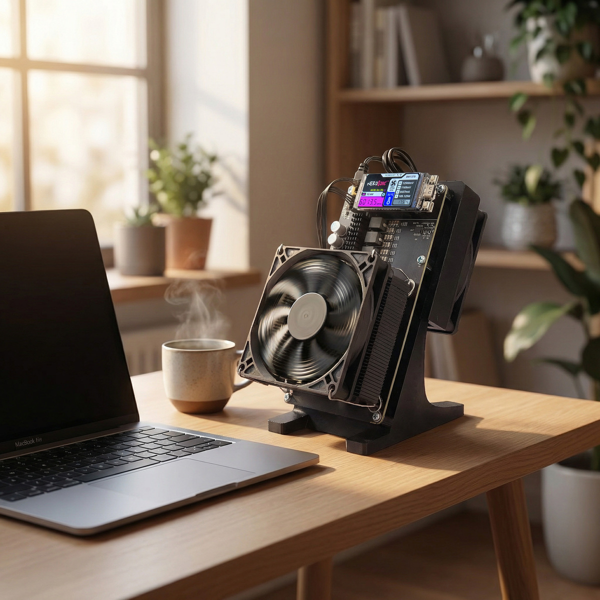 This btc miner features a dual-fan cooling system (50dB) for quiet home operation. With plug-and-play design, 2.4G WiFi, and connectors, setup takes minutessimply connect the 100-240V adapter and configure mining preferences via WiFi.