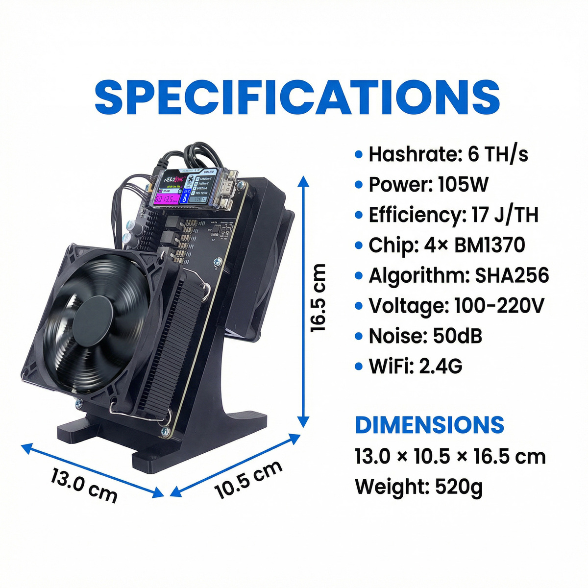 Upgrade to Rev6.1 Bitcoin Miner is a user-friendly bitcoin miner machine for beginners and experienced miners alike. Powered by BM1370 chips, this crypto miner offers stable 6TH/s hash rate with 105W
