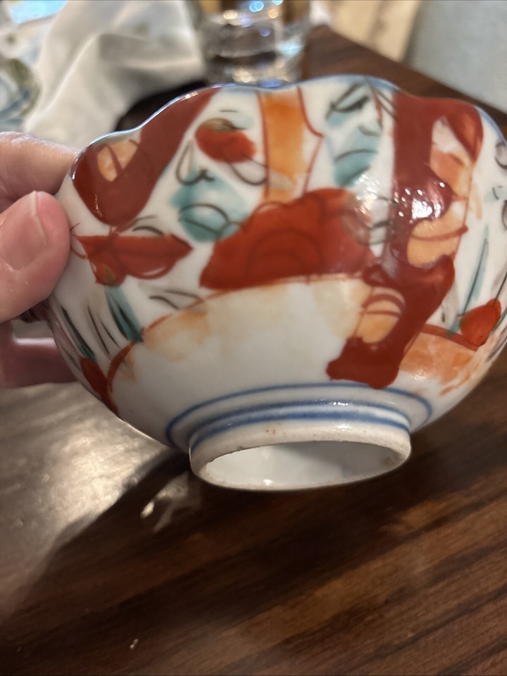 Antique Imari Hand painted Fluted Canton Basket Scalloped Bowl 5” Japan