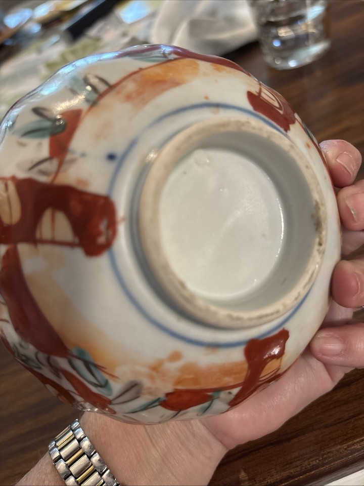 At 5 inches in diameter, this bowl is the perfect size for display or use. It's an original antique piece from Japan. Not quite sure of age. Don't miss your chance to own a piece of art and history with this exquisite Imari paneled basket bowl.