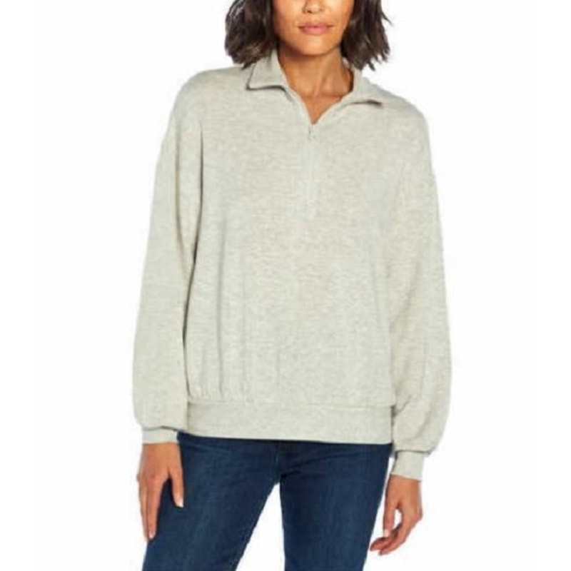 *Three Dots Women' Cozy Super Soft Quarter Zip Pullover, Gray - Large