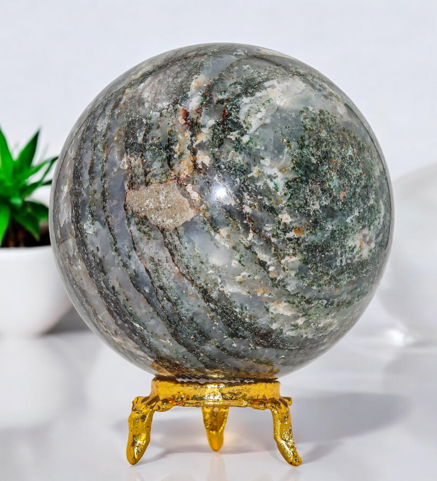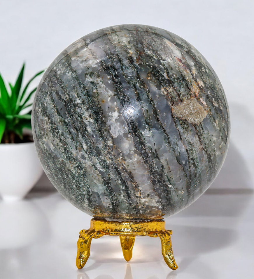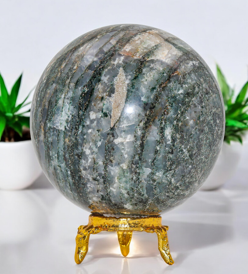 Bring harmony and balance into your life with this 100% natural Green Kyanite crystal sphere. Measuring approximately 75mm, this powerful gemstone is a must-have for crystal collectors, energy healers, and home decor enthusiasts.