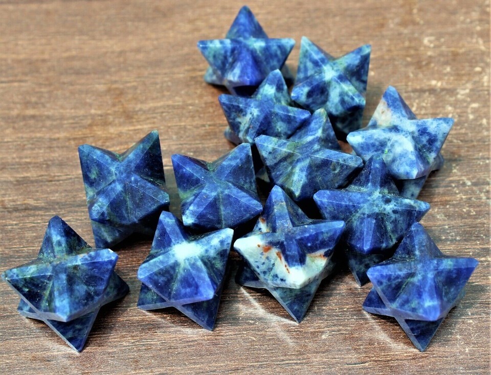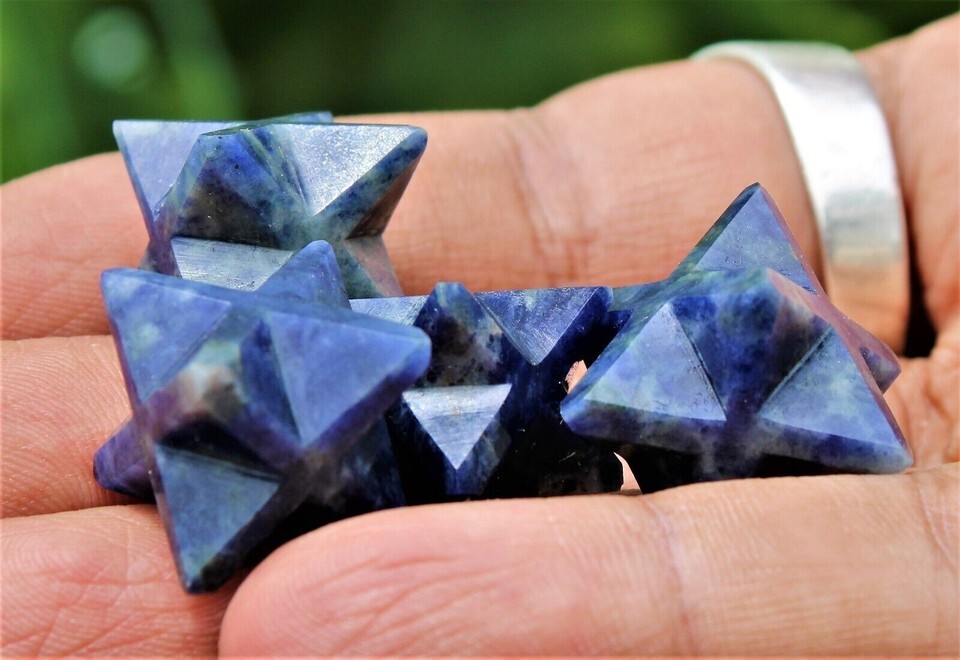One Mini Blue Sodalite Crystal Quartz Healing Stone Pocket Size Merkaba Star