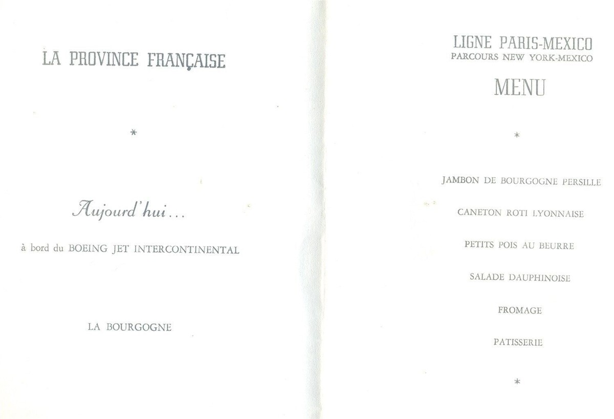 Air France Menu Paris New York Mexico 1962 Boeing Jet Intercontinental