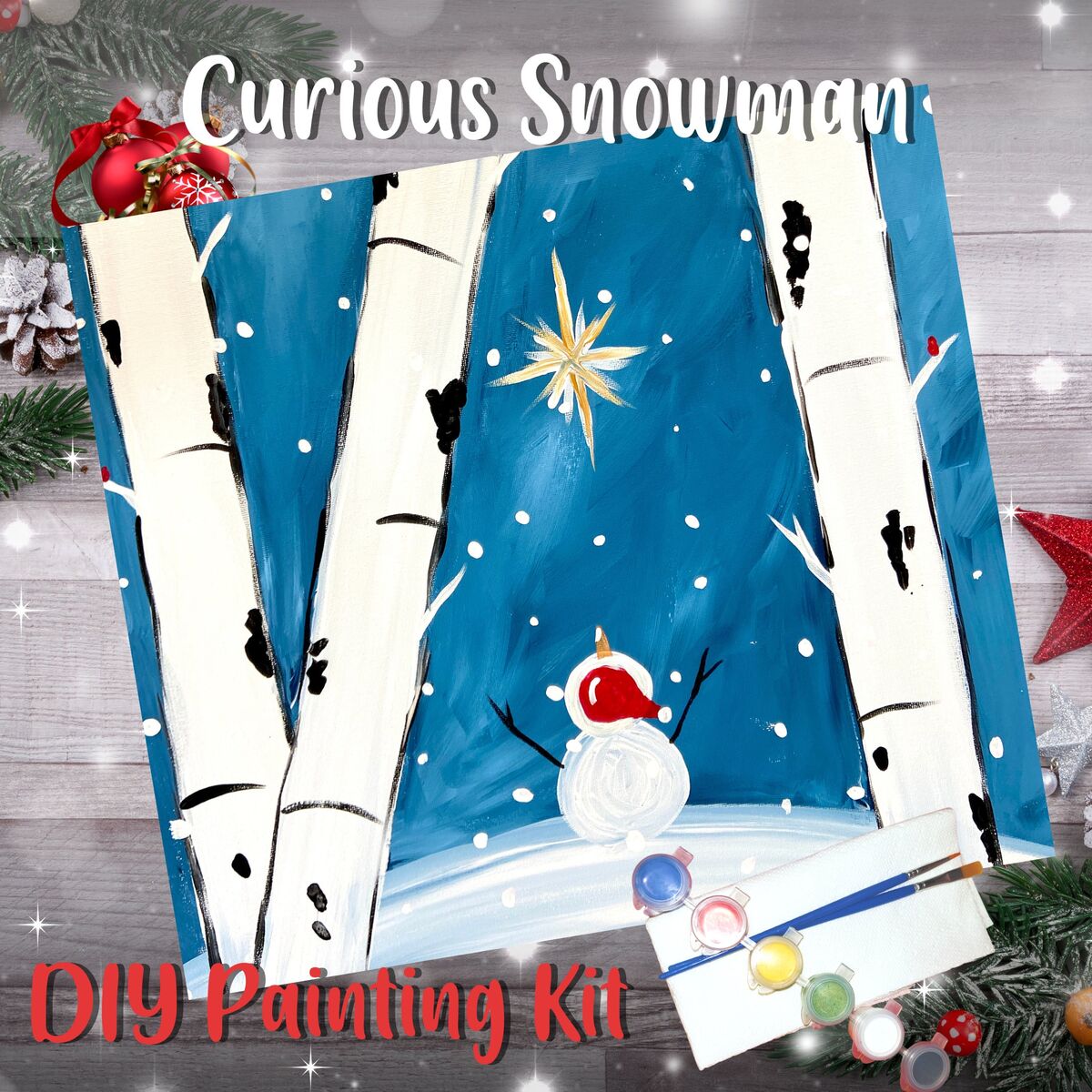 Curious Snowman Painting Kit - Paint Your Own - Hand-Drawn - Canvas Painting - P
