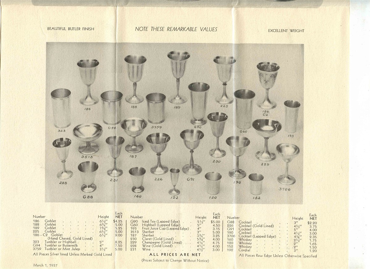 A double page illustrated fold out brochure. Frank W Smith Sterling Stemware Brochure Prices Gardner Massachusetts 1937