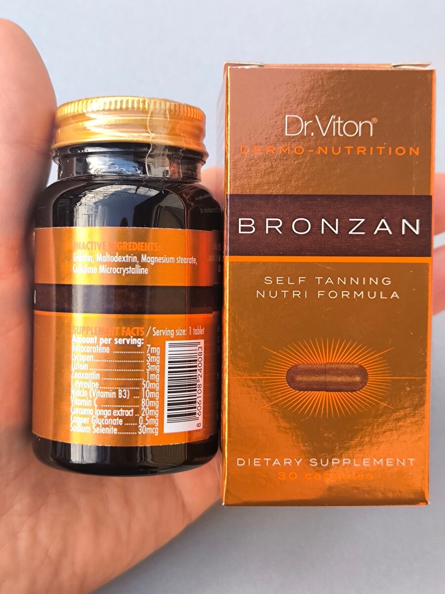 Bronzan Dr Viton 100% Natural and Organic sunless tanning 30 caps nutri formula