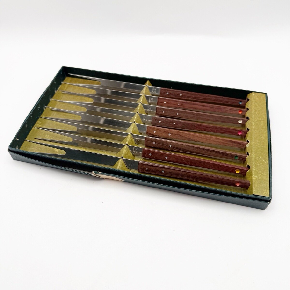 Vintage Fondu Forks Stainless Steel Wood Handles Set Of 8 MCM Japan New