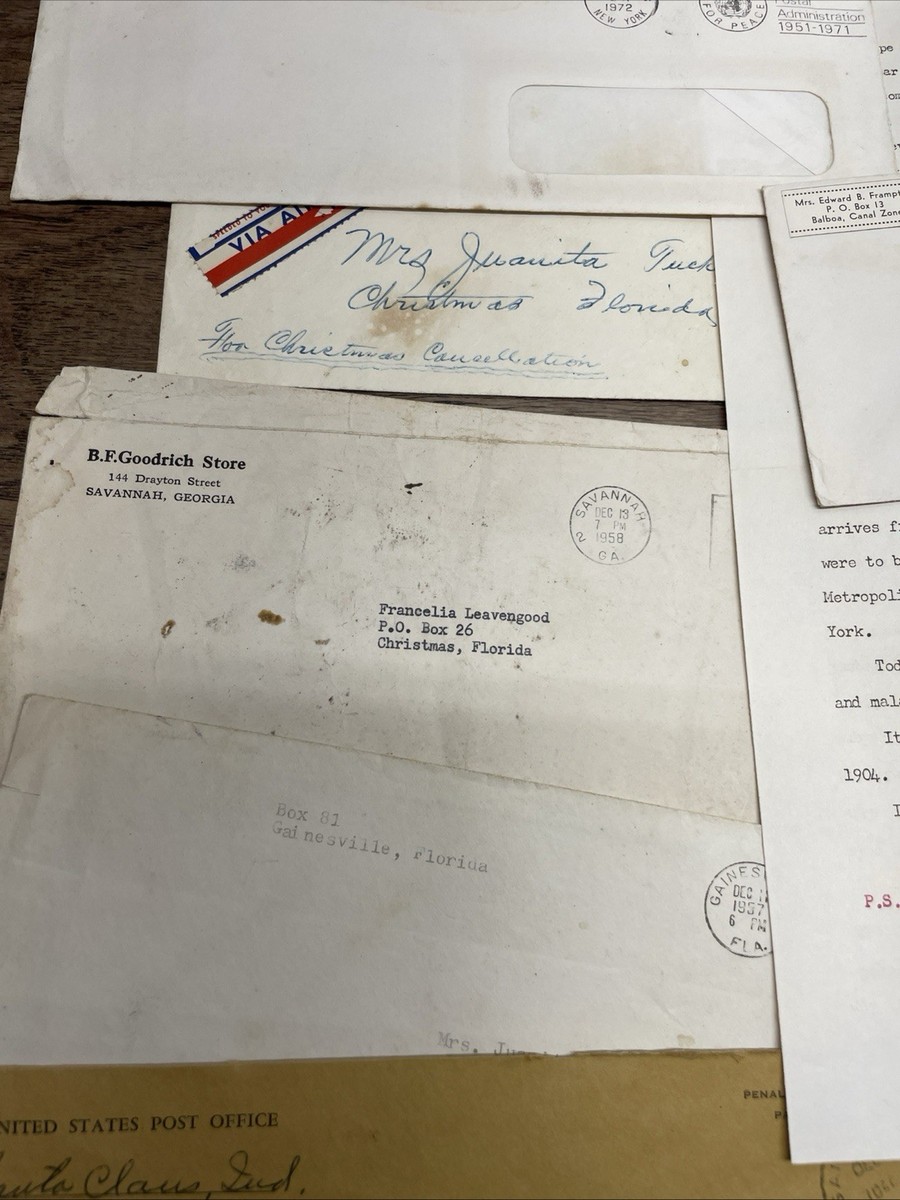 Vintage Envelopes Letters Paper Ephemera Postmarked Christmas Florida KG JD
