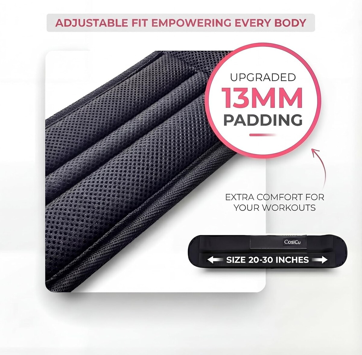 No Pain, All Gain: Our 13mm ergonomic padding technology eliminates barbell bruises, allowing you to focus on lifting heavier weights and effectively growing your glutes.
