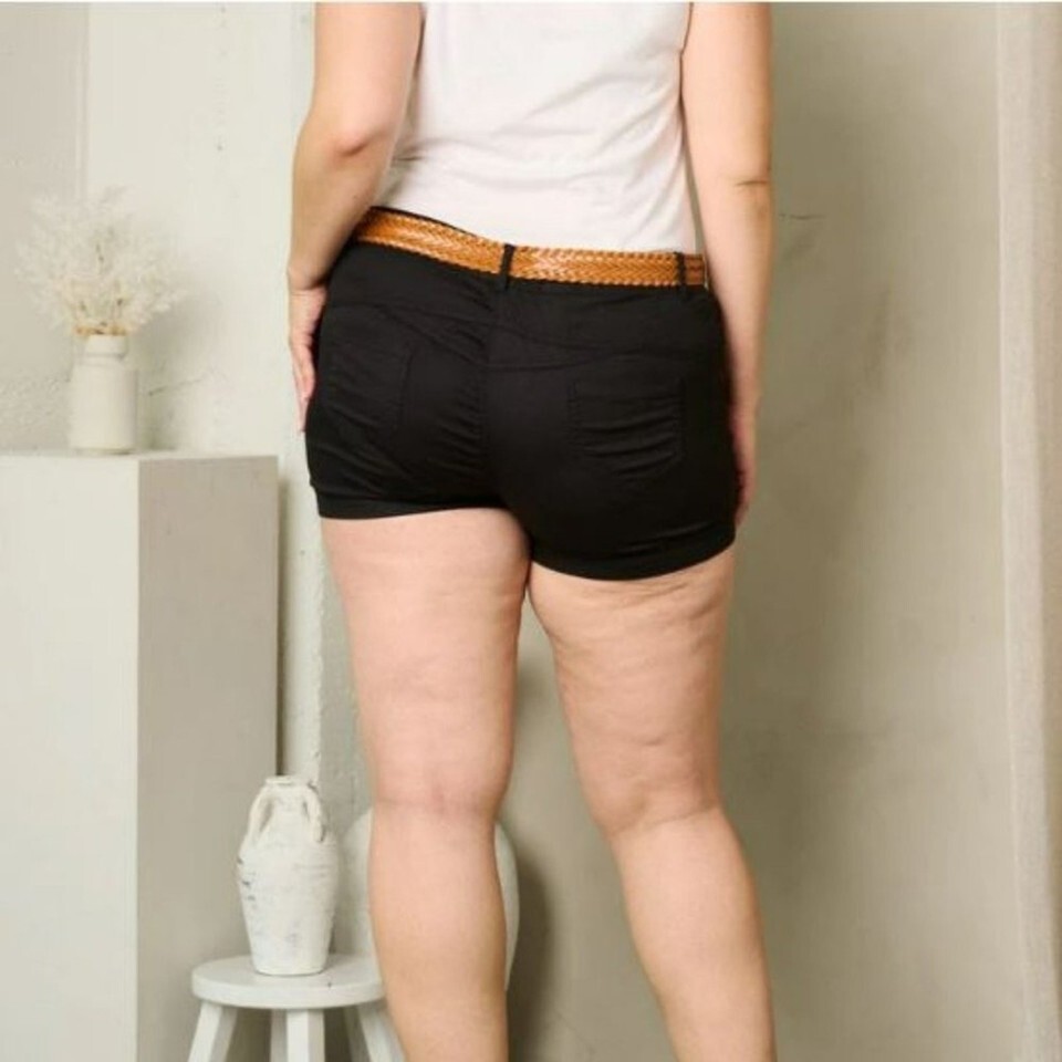 Elevate your summer wardrobe with these women's plus size shorts. These shorts feature a button closure and are made of a blended fabric that includes spandex and cotton, ensuring all-day comfort. The shorts come in a classic black color and have a solid pattern that is perfect for any occasion, whether it's a casual day out or a party/cocktail event. The shorts also come with a belt and pockets, making them both stylish and practical. The inseam measures 5.5 inches, and the waist size is plus, ensuring a comfortable fit for all body types. They are machine washable, making them easy to care for. These shorts are perfect for walking, beach activities, or just lounging around.