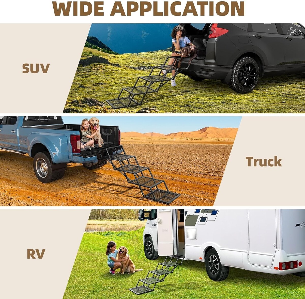 Portable and Foldable: The dog stairs steps for truck folds down to just 21.6 x 18.5 x 5.5 inches (55 x 47 x 14cm), and fits effortlessly into your car's trunk, ensuring portability and convenience.