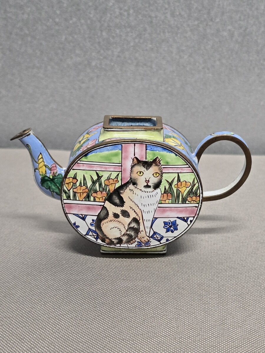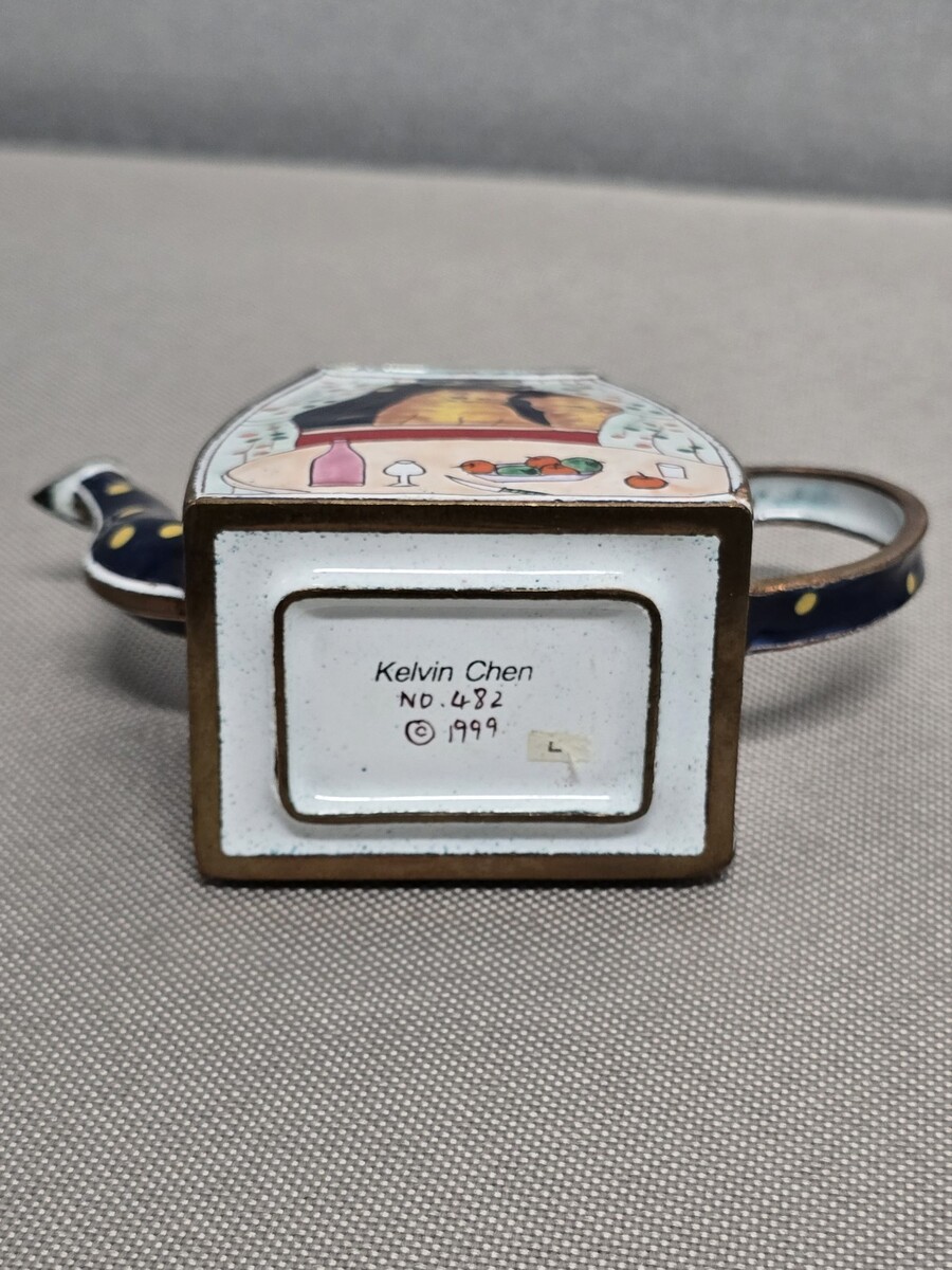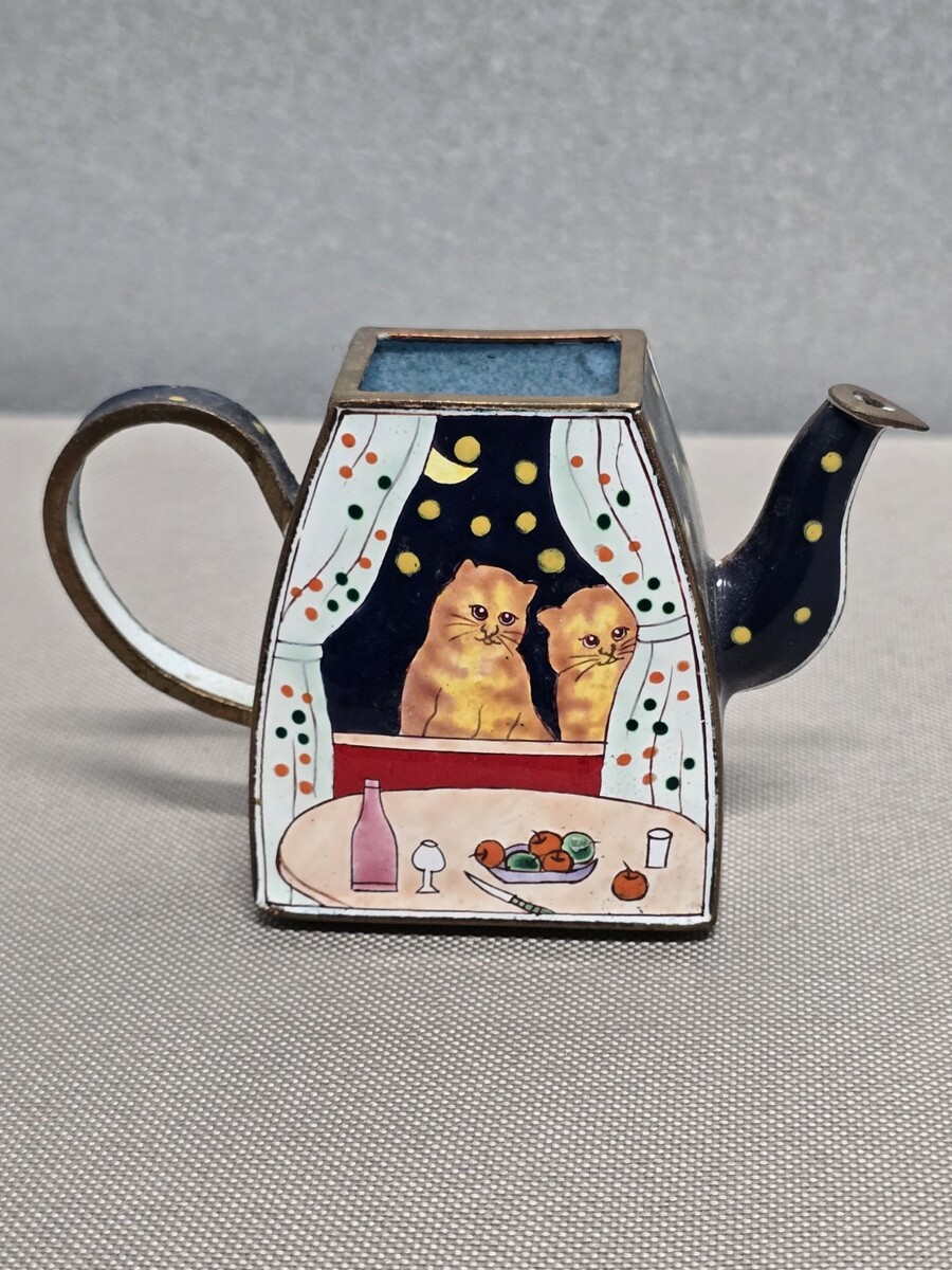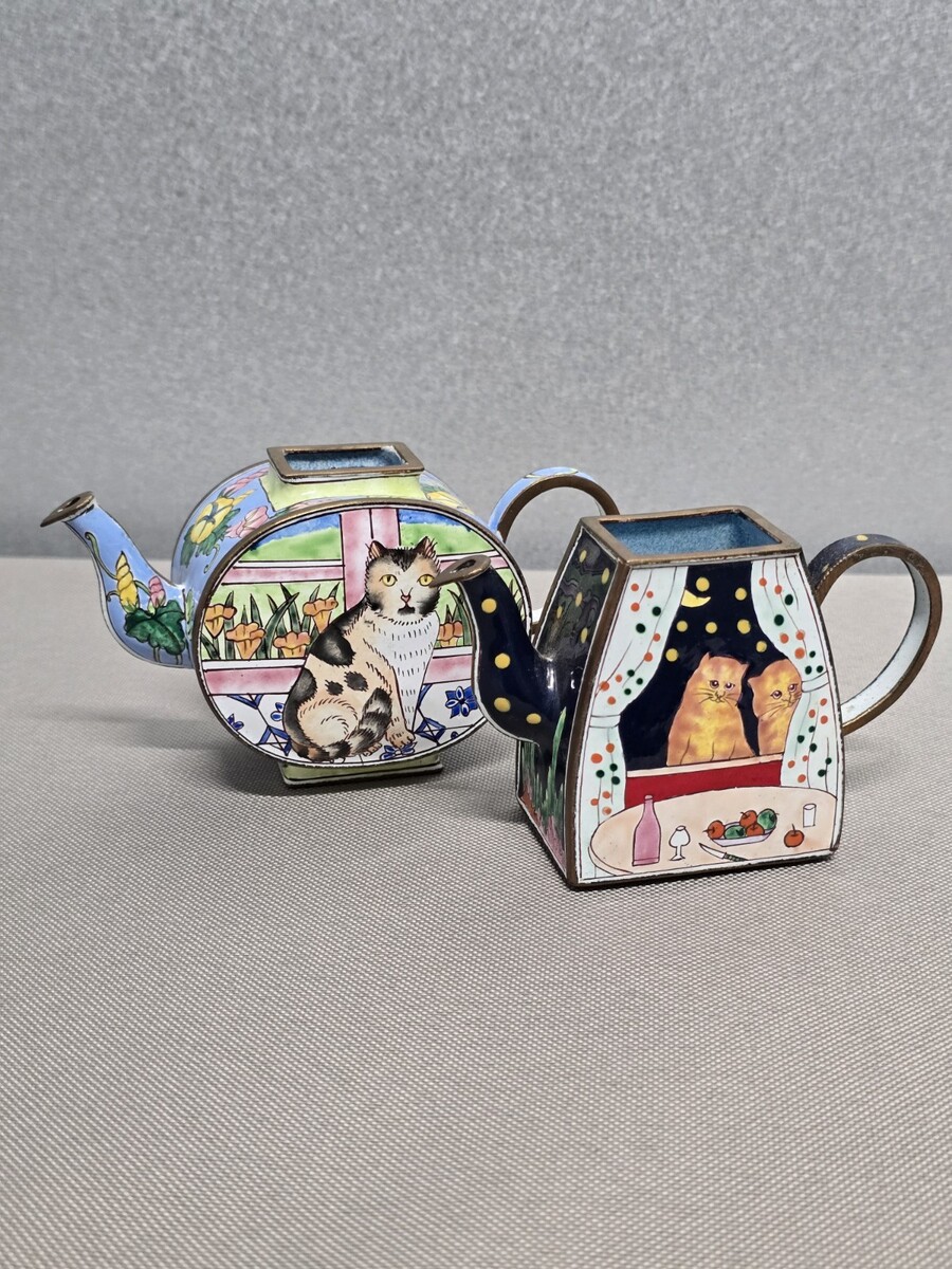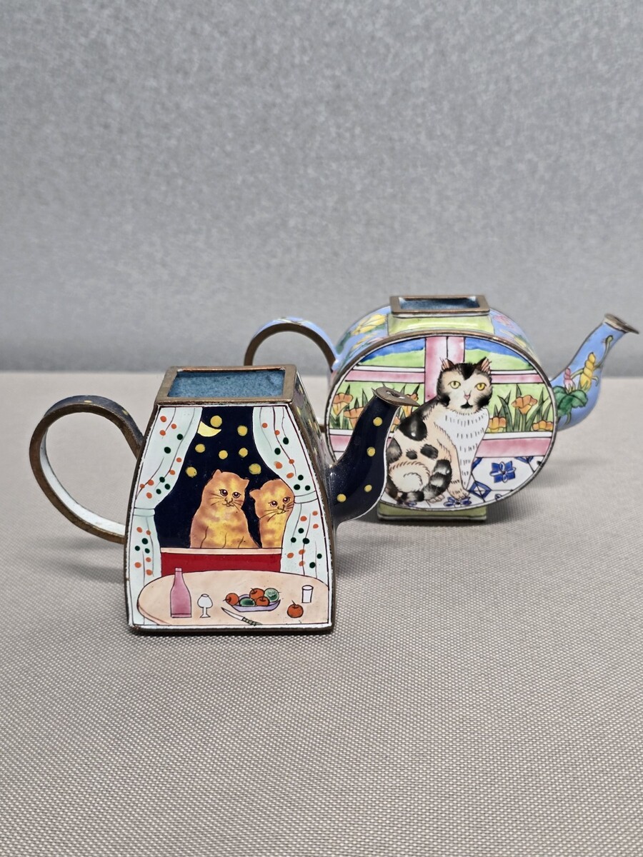 1999 Kelvin Chen Cats Enamel Miniature Teapots Cats