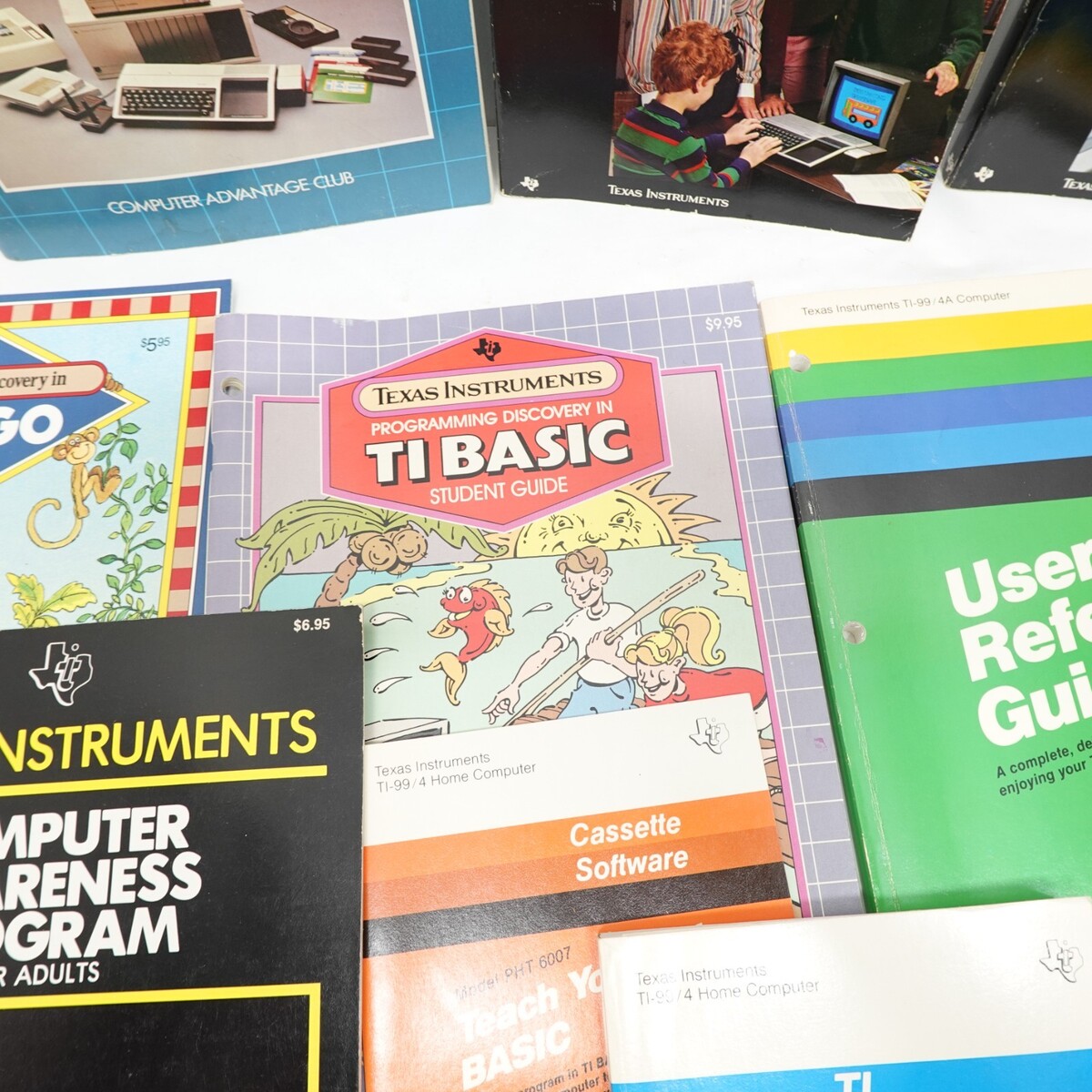 Vintage Texas Instruments TI-99/4A computer documentation and programming manuals lot.