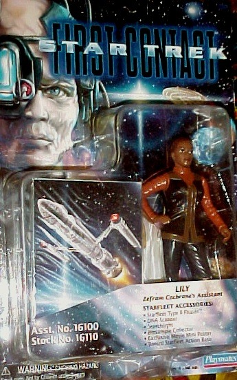 1996 - Playmates / Paramount - Star Trek First Contact,Lily (Zefram Cochrane's Assistant) - 4.5 Inch Action Figure,Exclusive Mini Movie Poster - Bonus: Starfleet Action Base,Type II Phaser / DNA Scanner / Searchlight / Biosample Collector,New - Mint - Limited Edition - Collectible - Out of Production