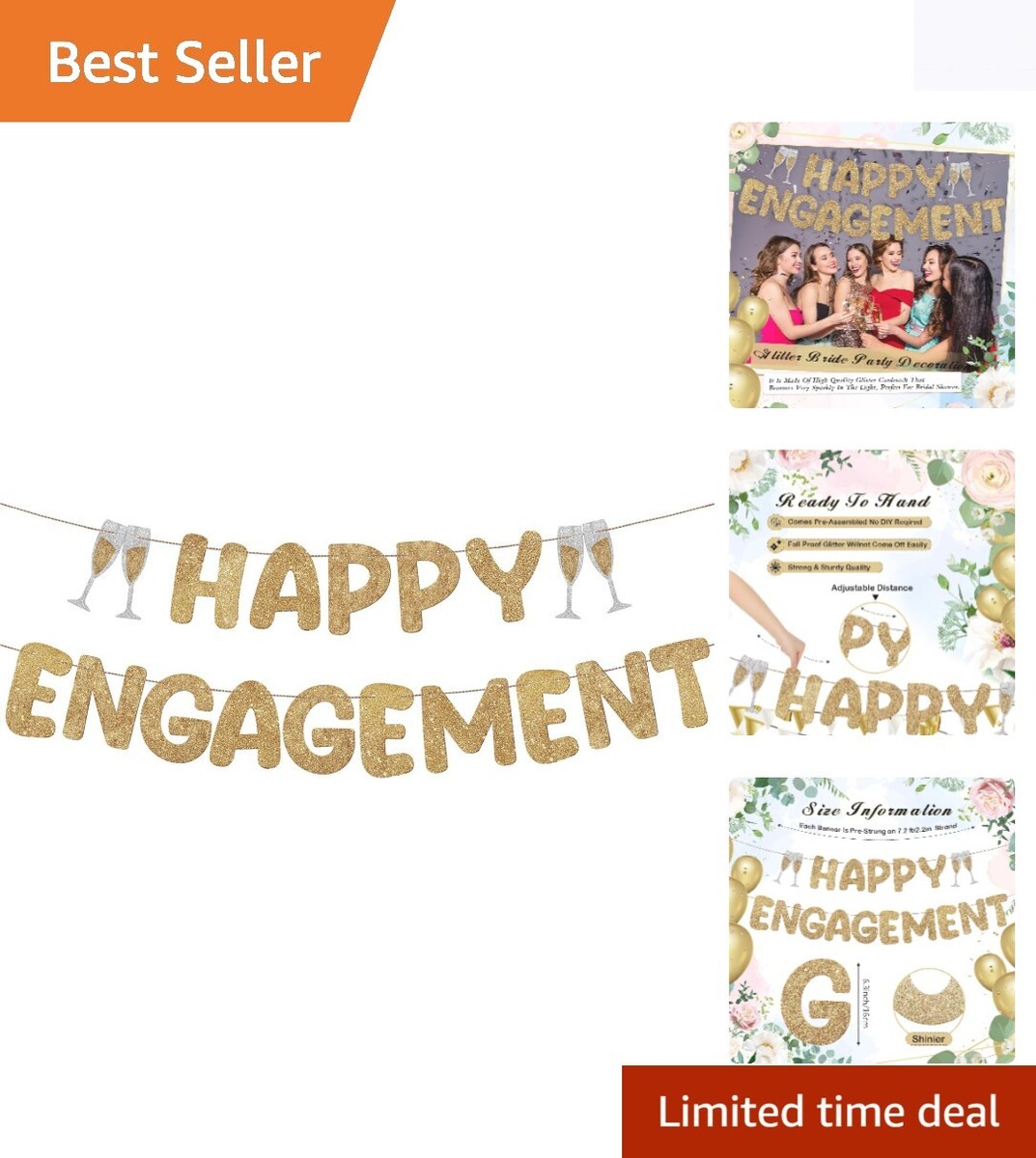 Sophisticated Pre-Strung Happy Engagement Sign ? Glittery Celebration Decor