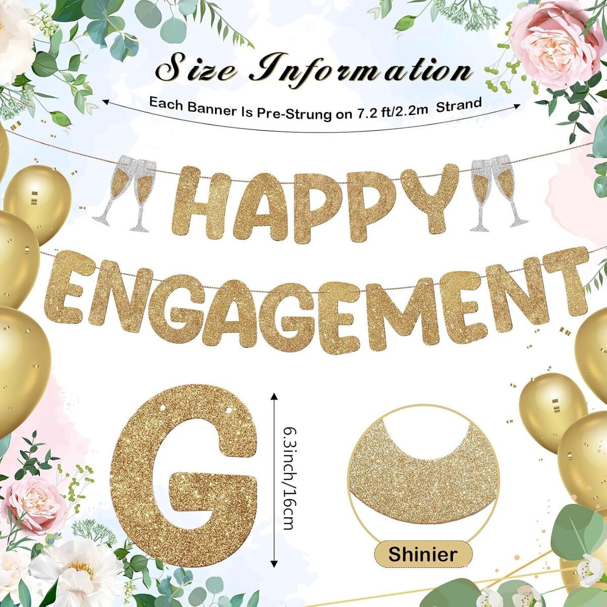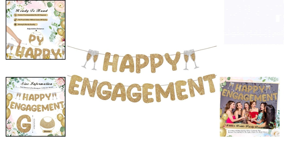 10 feet long glitter happy engagement banners that make a bold statement.