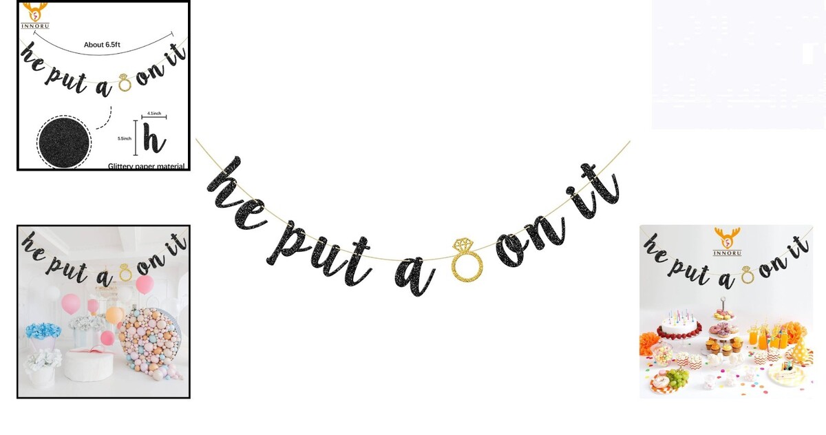 Elegant He Put A Ring On It Banner ? Black Glitter Engagement Party Decor