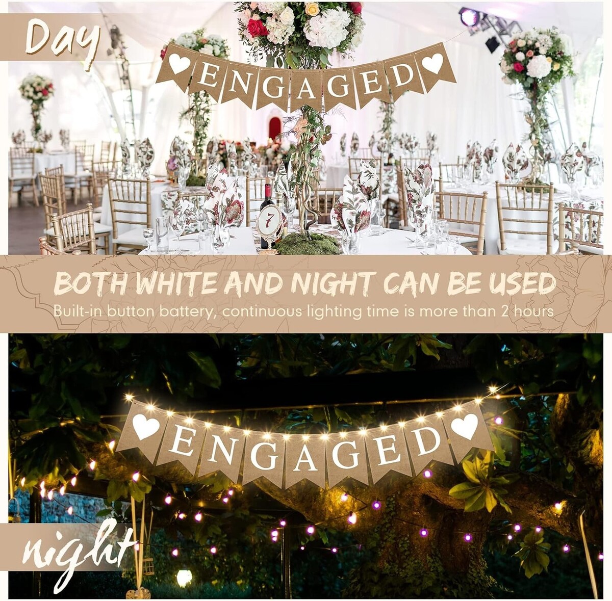 Engaged Banner, Led Fairy Lights |