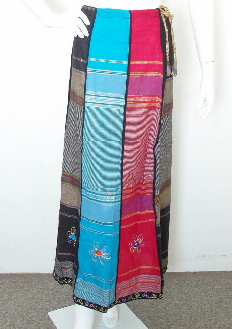 The embroidery and mirrors creates the design are sewn at the bottom part of the skirt. This skirt has a string pull waist band.
