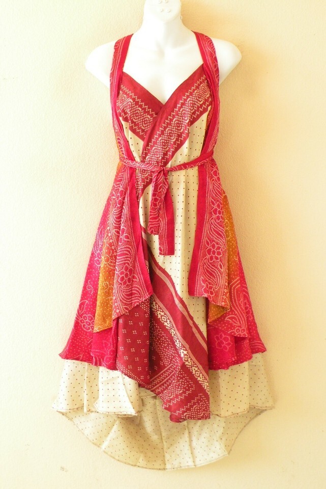 A luxurious blend of one of kind colors and prints enriched by a unique patterns. These beautiful 2 layers versatile vintage silk wraps offer an array of possibilities for over 100 ways to wear. You can achieve any number of looks from simple to sophisticated in skirt, dress, top, sarong, sari style, poncho or shawl.