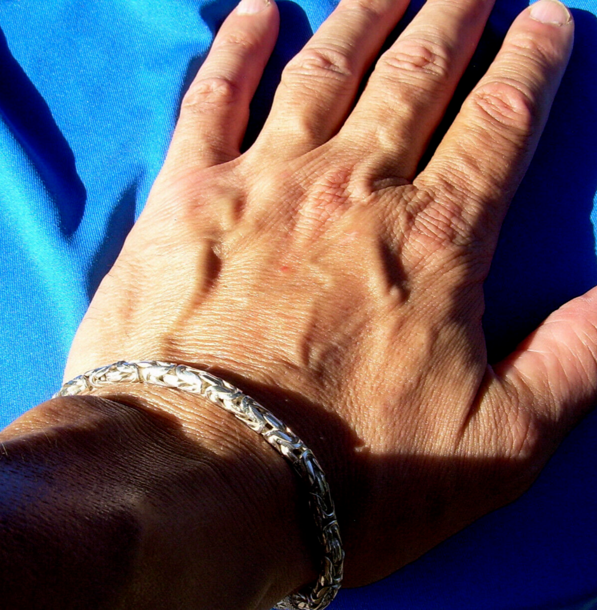 STERLING SILVER WOVEN HAND MADE CHAIN BRACELET.