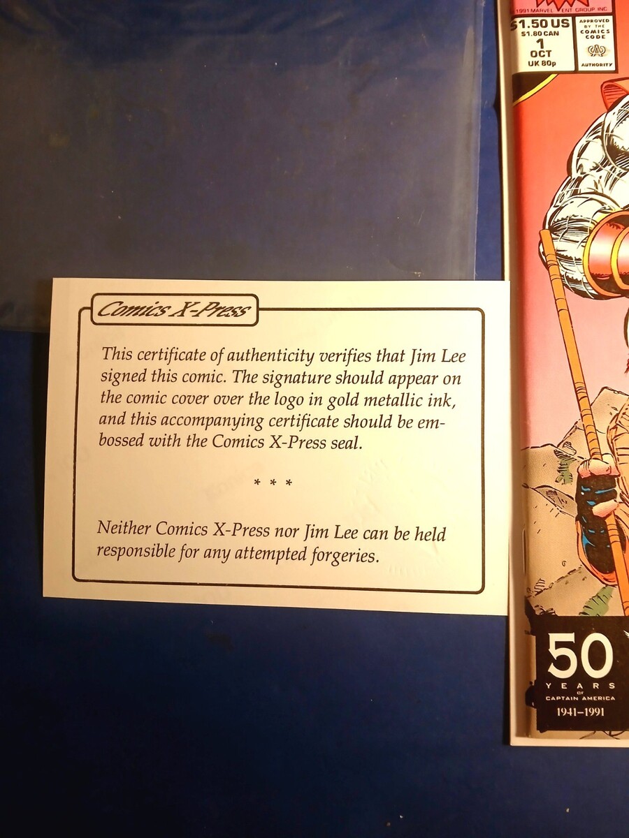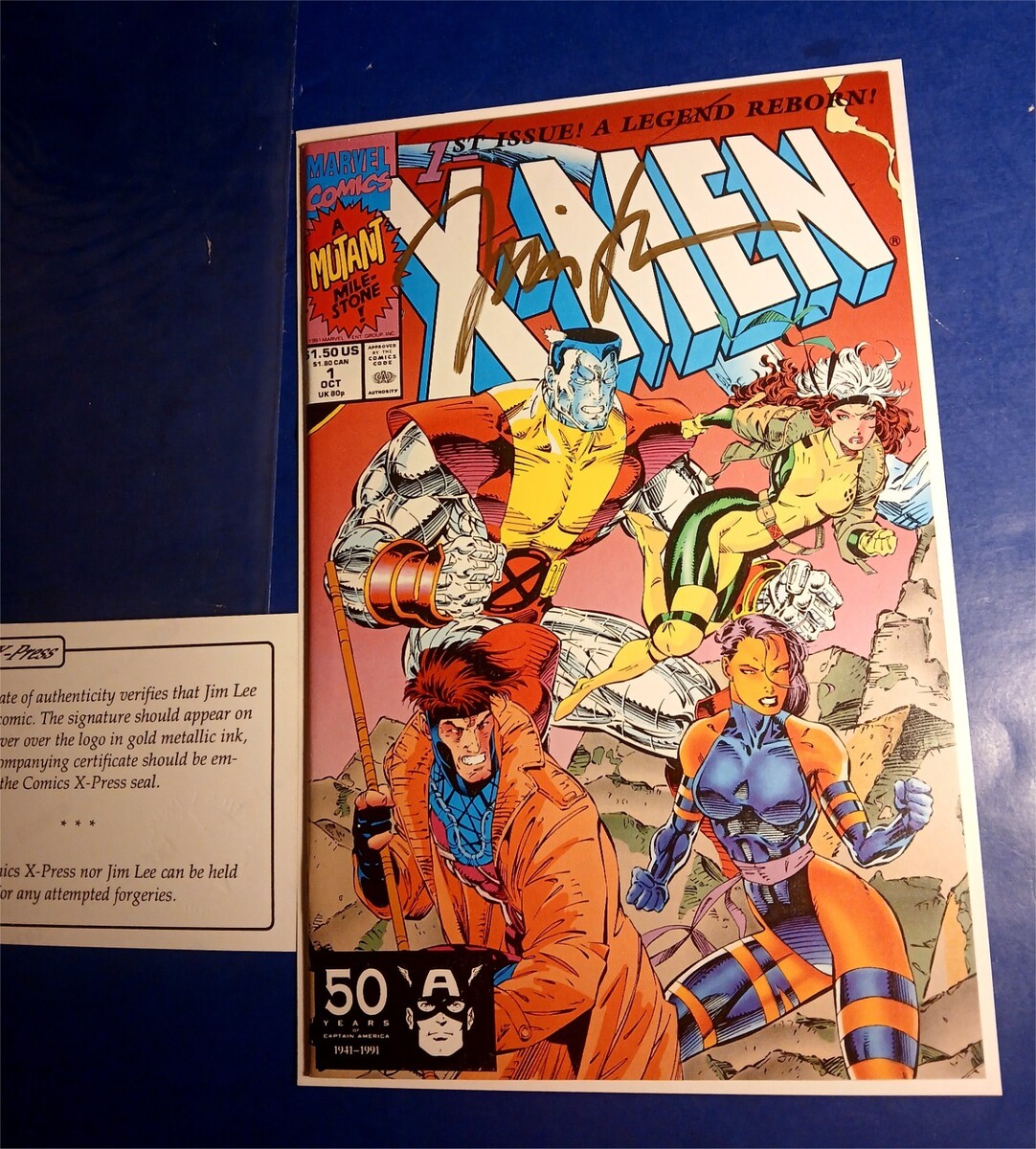 This is an excellent condition (no bends, sharp corners) X-Men #1 signed in bold gold ink by Jim Lee. Will pack well and ship fast!