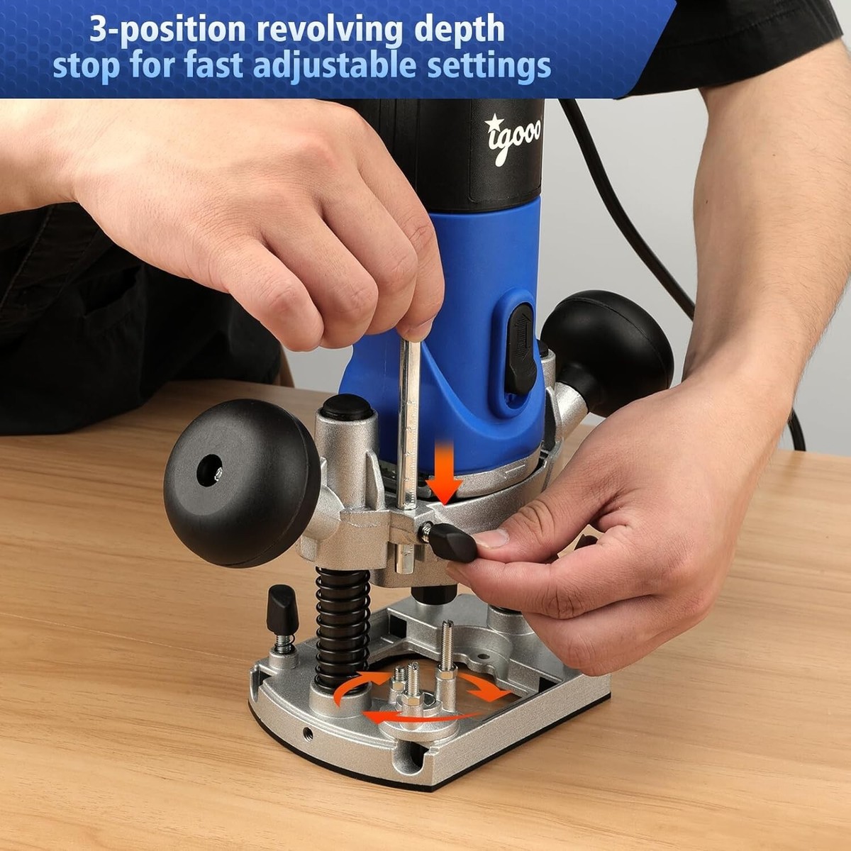 3-position revolving turret and depth stop for fast adjustable settings. Plunge lever easily accessible plunge for maximum control.