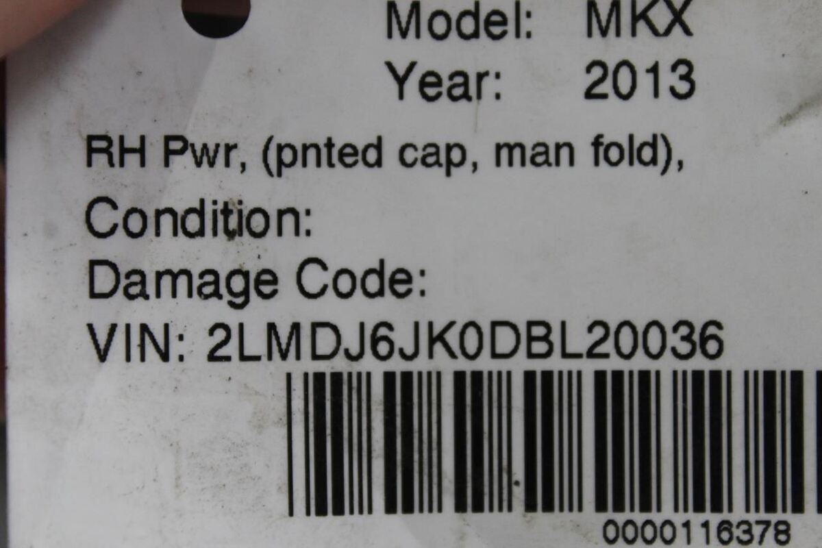 MKX 12-15 Power, (painted cap, manual fold), (lamps, heated and memory), w/blind spot alert, R.