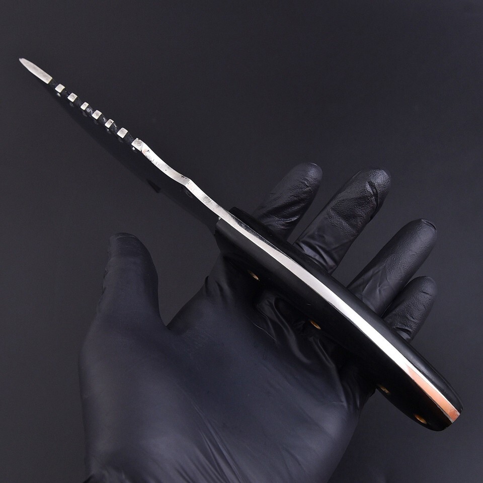 The 5? carbon steel blade offers a robust cutting edge with good edge retention and ease of maintenance. Carbon steel provides solid toughness and is suited for field use; it chills hardens well for sharpness and can be resharpened in the field. The blade profile balances utility and control.