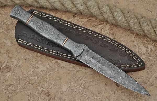 FORGED DAMASCUS STEEL DOUBLE EDGE BLADE THROWING BOOT DAGGER HUNTING CAMPING KNIFE