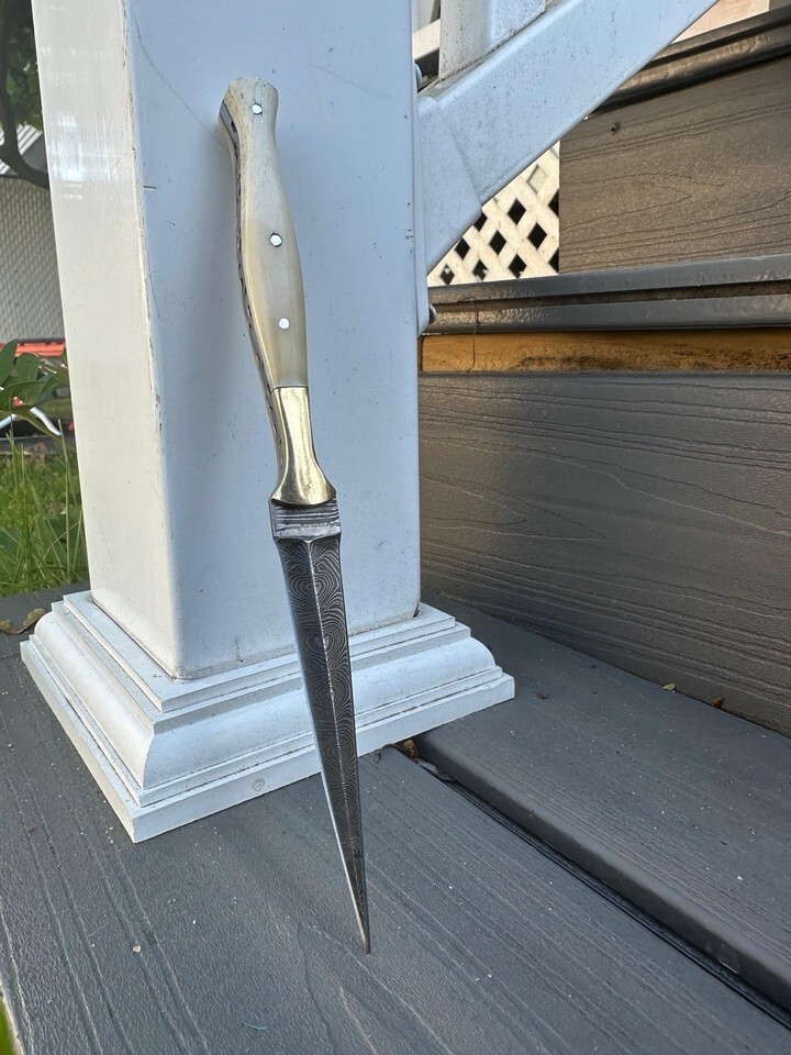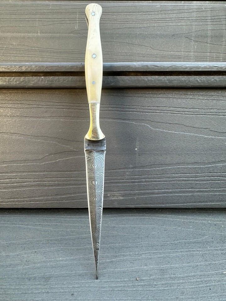 AUTHENTIC Double-Edged Damascus Needle Blade Dagger boot Knife Throwing Hunting