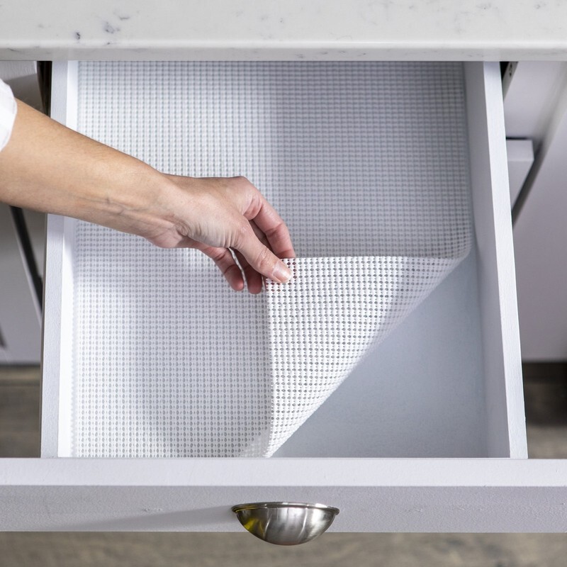 Non-adhesive grip top and bottom holds liner and objects in place Provides cushion and protection Easy to install Machine washable, cold water. Lay flat to dry. Ideal for: drawers and utility cabinets Variety of colors Brand: Duck Brand