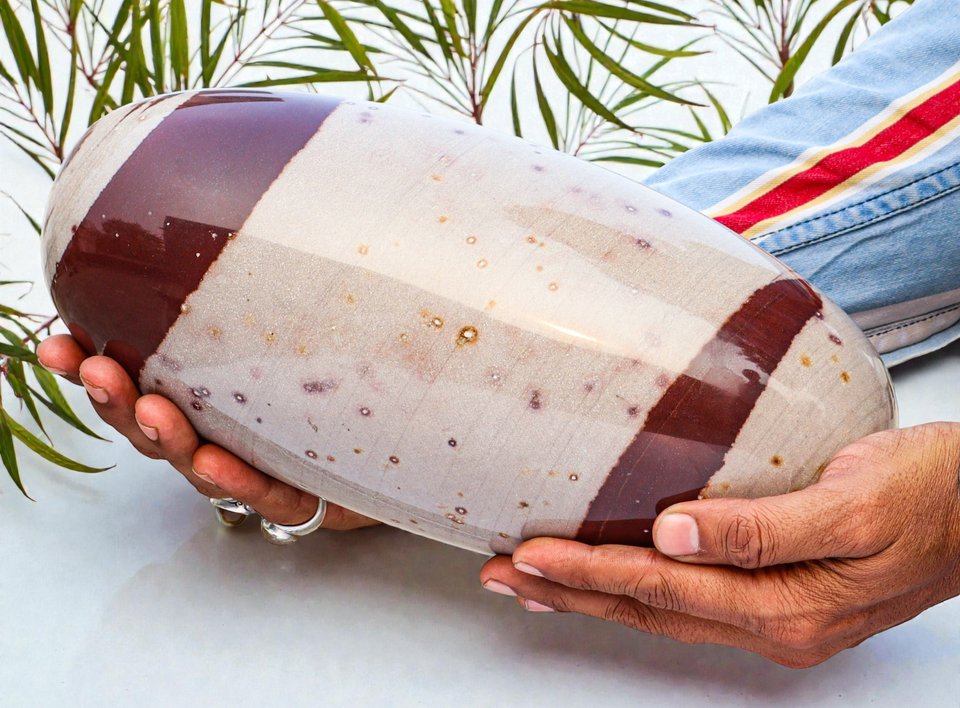 Superb 285MM Polished Brown Narmada (Narmadeshwar) Crystal Healing Stone Lingam Specimen For Healing, Fengshui, Reiki, Aura, Meditation, Metaphysical, Decoration and Minerals Specimen.