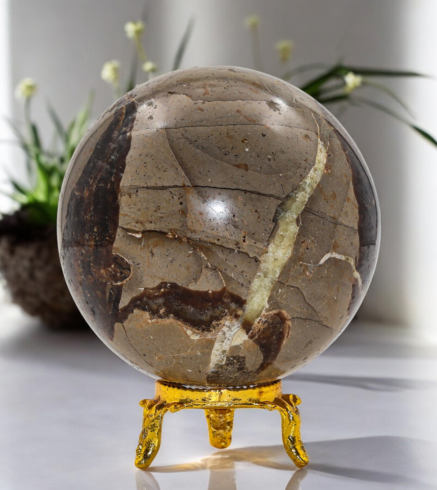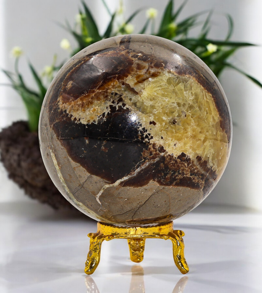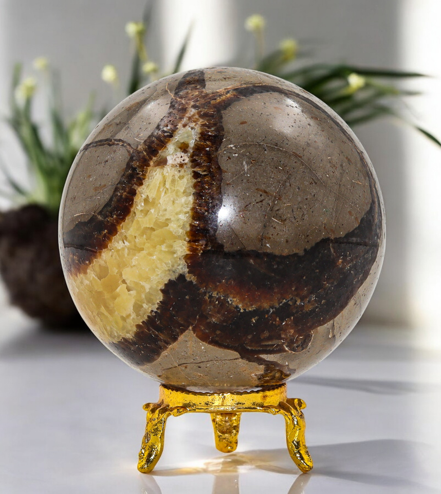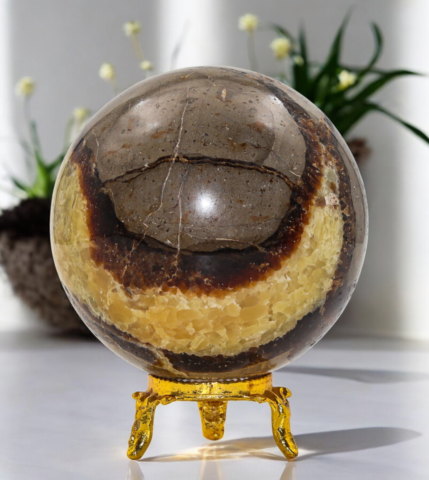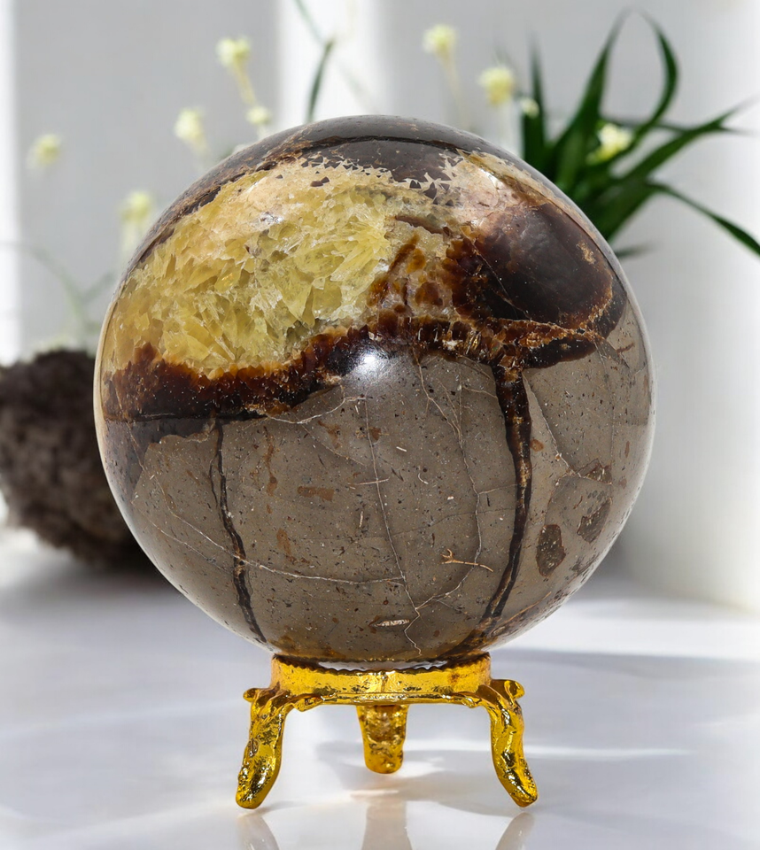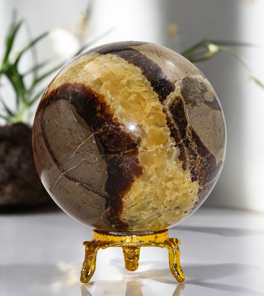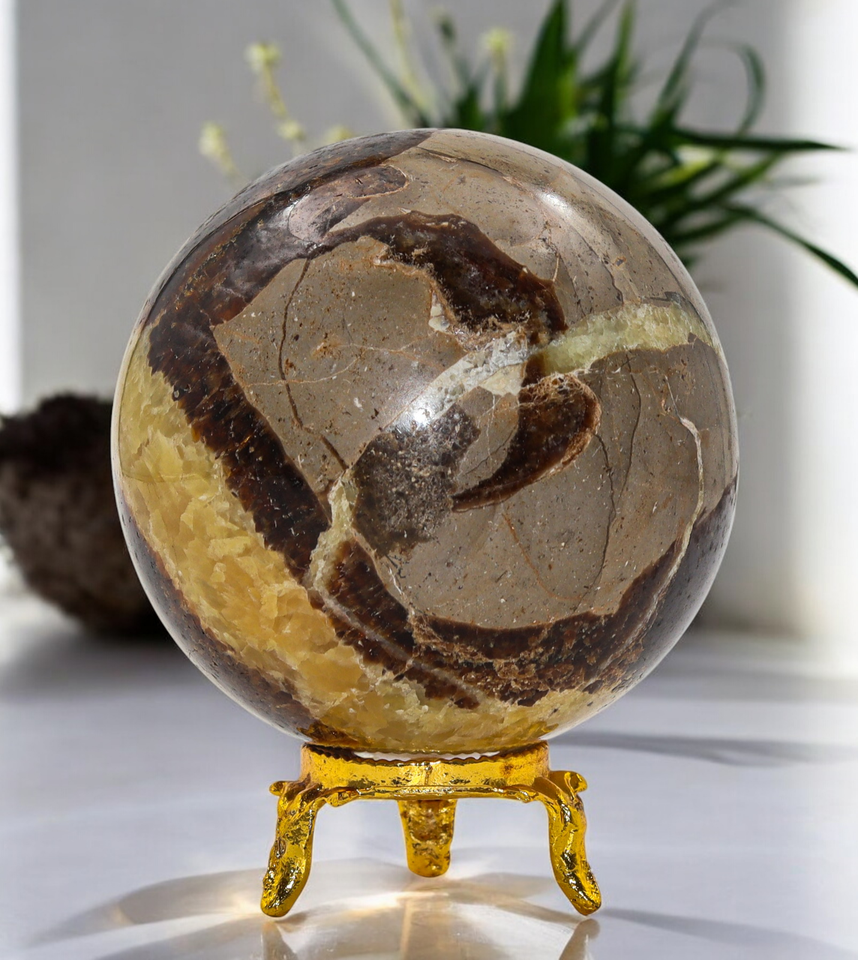 Yellow Septarian Sphere, Dragon Stone Crystal, Septarian Healing Stone, Reiki Crystal Ball, Chakra Balancing Sphere, Natural Gemstone Decor, Crystal Meditation Tool, Metaphysical Crystal Sphere, Unique Crystal Gift, Earth Energy Stone, Septarian Polished Sphere