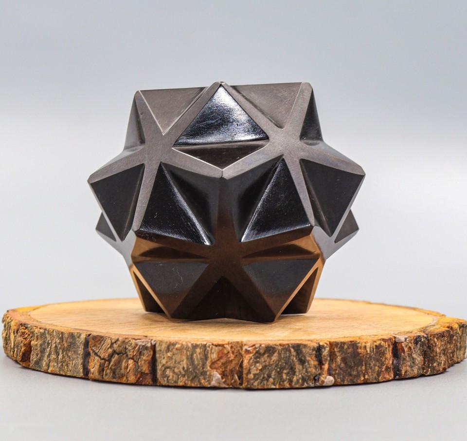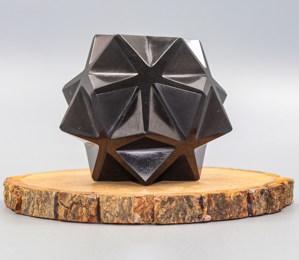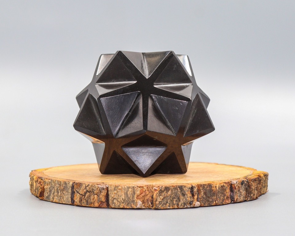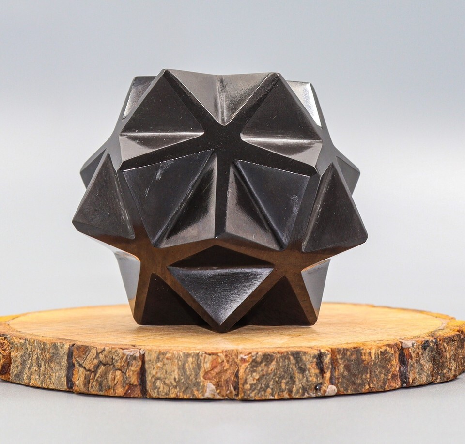 Superb Hand Carved 70MM Natural Polished Black Tourmaline Crystal Quartz Healing Stone Ball Shapped 20 Points Star For Healing, Fengshui, Reiki, Aura, Meditation, Metaphysical, Decoration and Minerals Specimen.