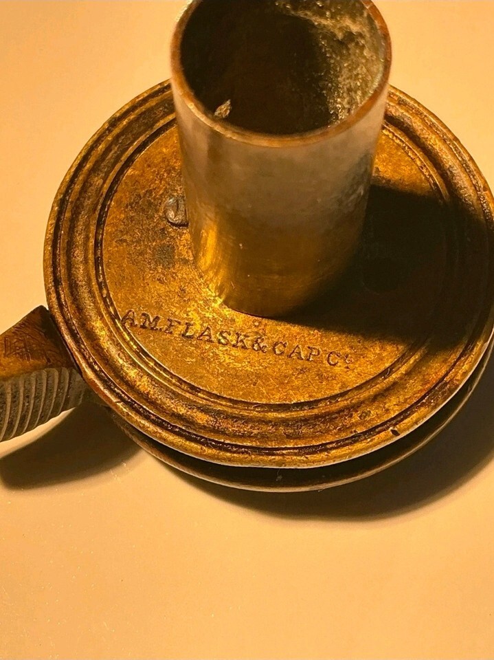 Antique AM Flask & Cap Co Powder Flask – American Copper & Brass – c. 1850s