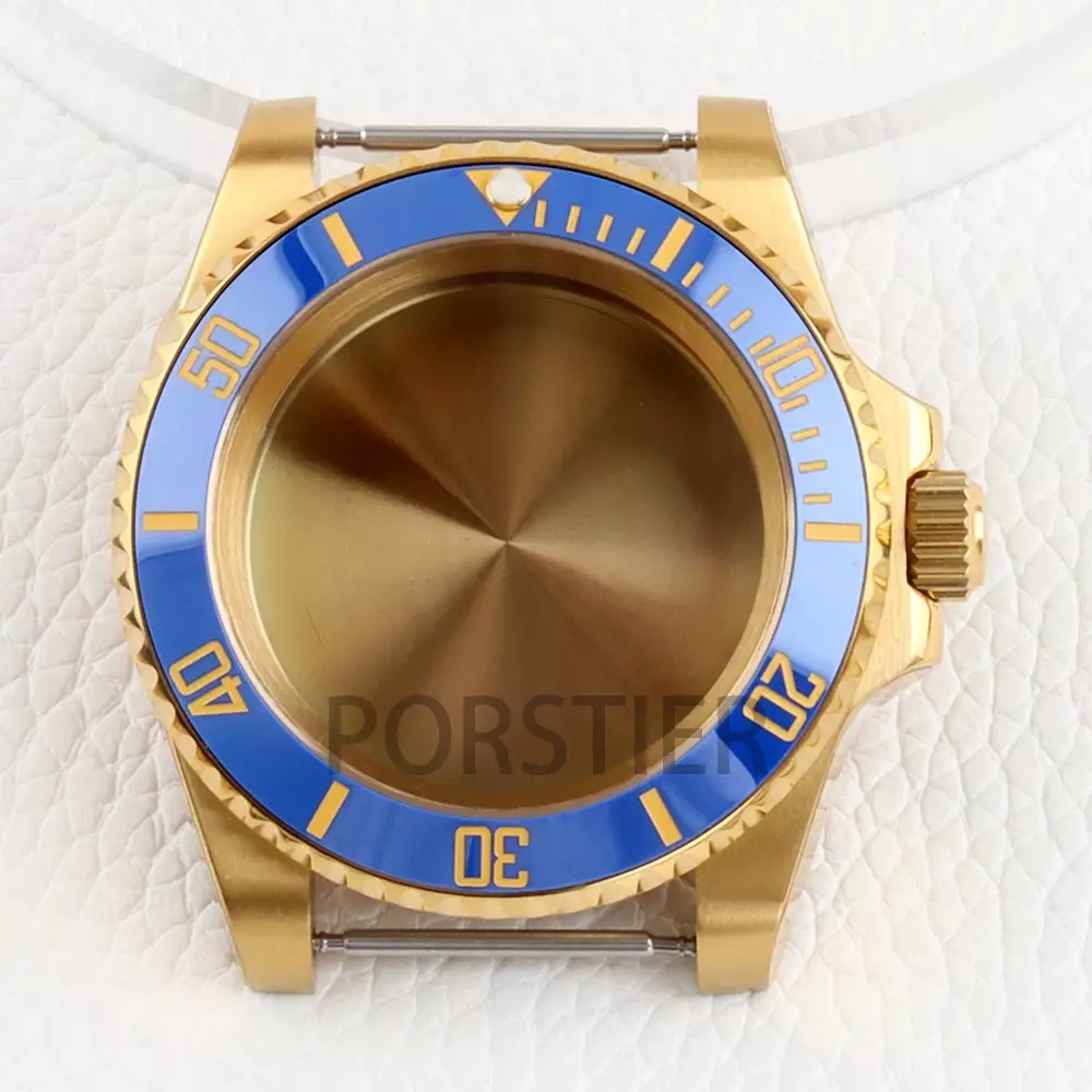 Gold Watch Case Stainless stee 40mm for Sub Gmt NH34 NH35 NH36 Automatic movement 28.5mm Dial Sapphire Glass Rubber Strap