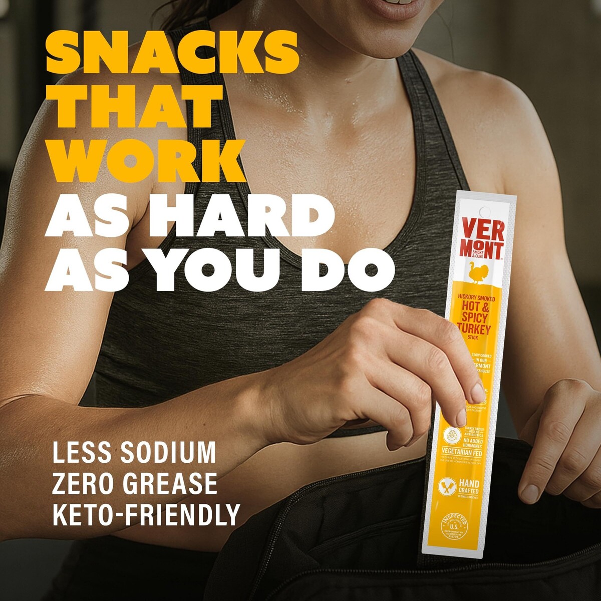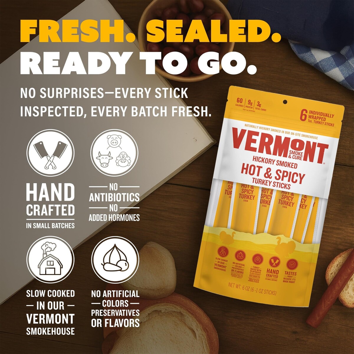 Dated 2/2026 ? Meat Snacks That Go Further - Enjoy bold, smoky turkey sticks infused with southwestern chili, paprika, and chipotle. Each 1oz stick delivers savory heat and clean protein-ideal for trails, lunchboxes, or anytime fuel. ? Bold, Balanced Flavor - Our hot spicy turkey blends robust smoky heat with just enough spice-not over the top. These meat snacks deliver flavor without greasiness or harsh burn. ? Fresh and Clean Snacking - Individually wrapped meat sticks sealed for freshness. No refrigeration needed until opened. Easy to toss in your bag for on-the-go protein snacks that stay fresh. ? Individually Wrapped - 24 meat snacks per box. Like true Vermonters, we don't cut corners on quality. Grab and go-no guesswork, no waste. Each mini stick delivers consistent, quality, healthier snack options. ? Beyond the Usual Bite - Vermont Smoke Cure goes further for those who push past the grind-crafting clean, flavorful snack sticks for people who go beyond snacking, beyond ordinary, and beyond expectations