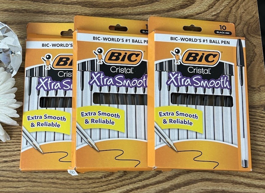 3x BIC Cristal Ballpoint Pens Medium 1.0mm Black Ink 10 Packs 30 Total
