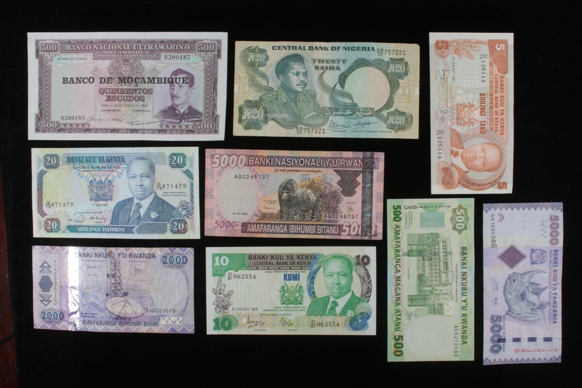 Lote de monedas de 9 billetes de Africa // Kenia, Mozambique, Nigeria, Ruanda y Tanzania