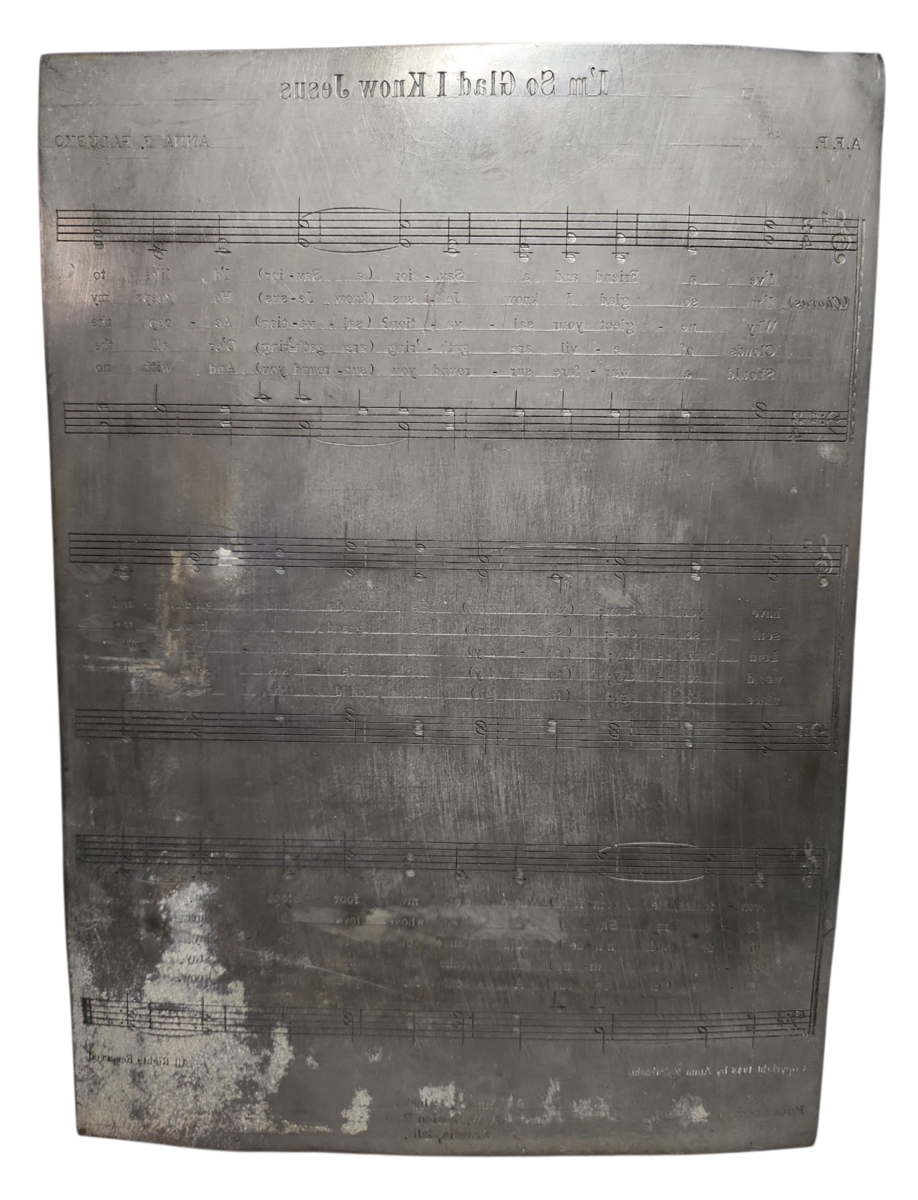 Anna Palusko 1948 I'm So Glad I Know Jesus Sheet Music Printing Plate California