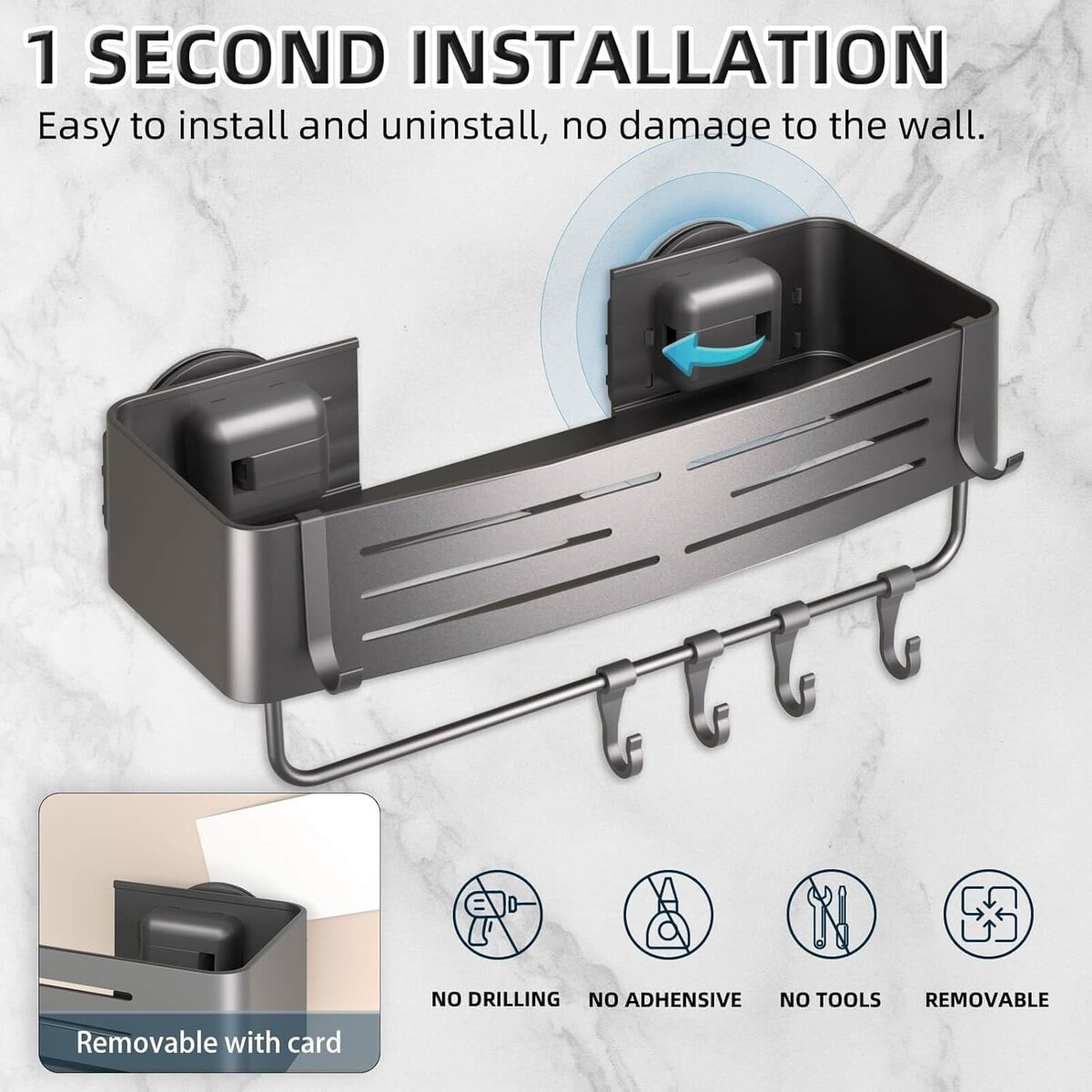 Caddy, Hooks, Manual, Screws, Towel Bar |