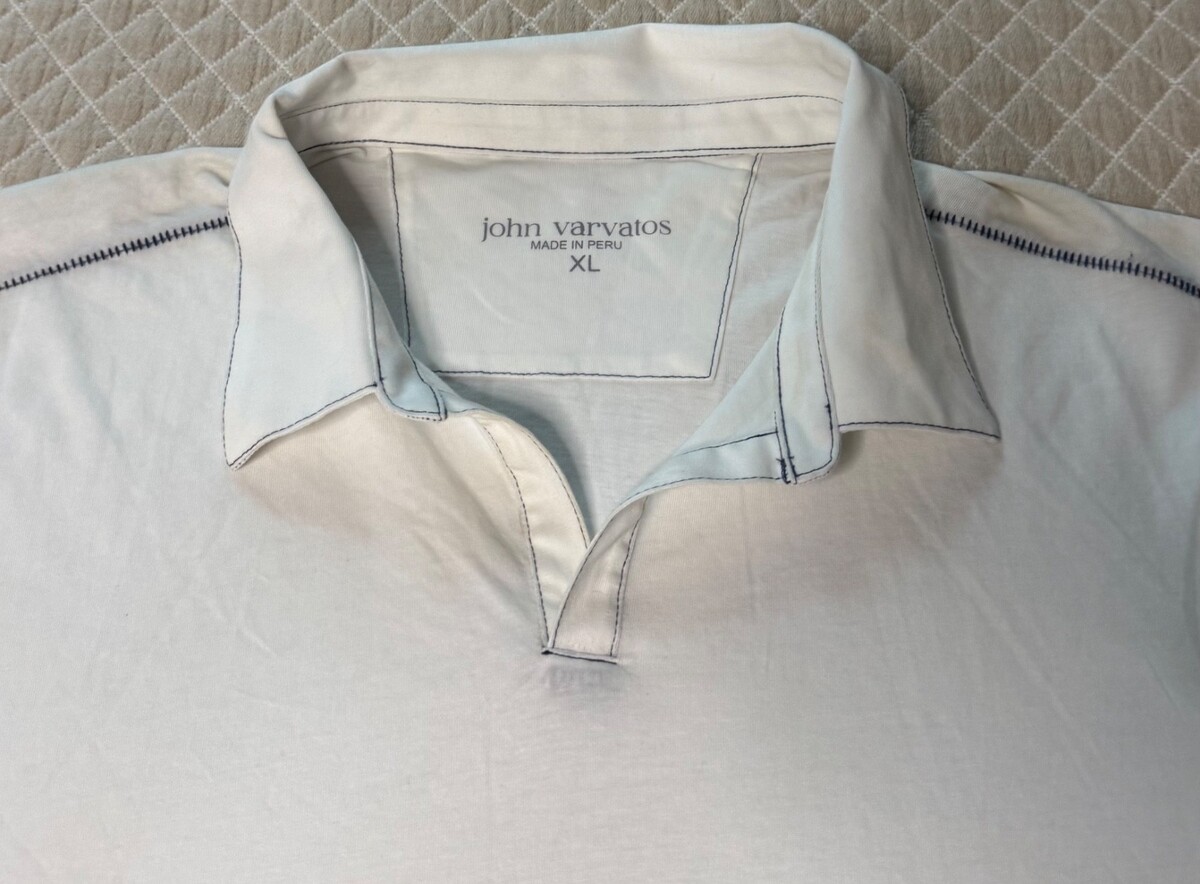 John Varvatos Men's Short Sleeve Open Collar Polo Shirt White Size L NWOT