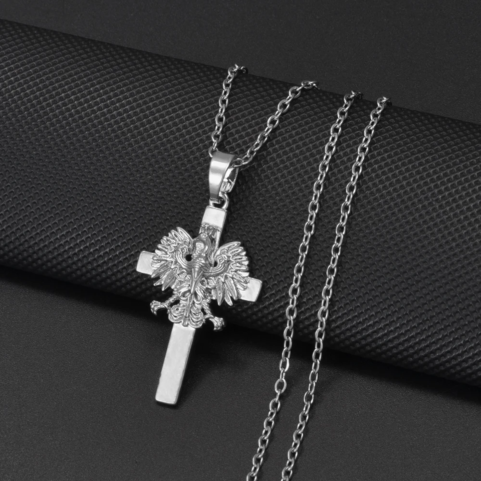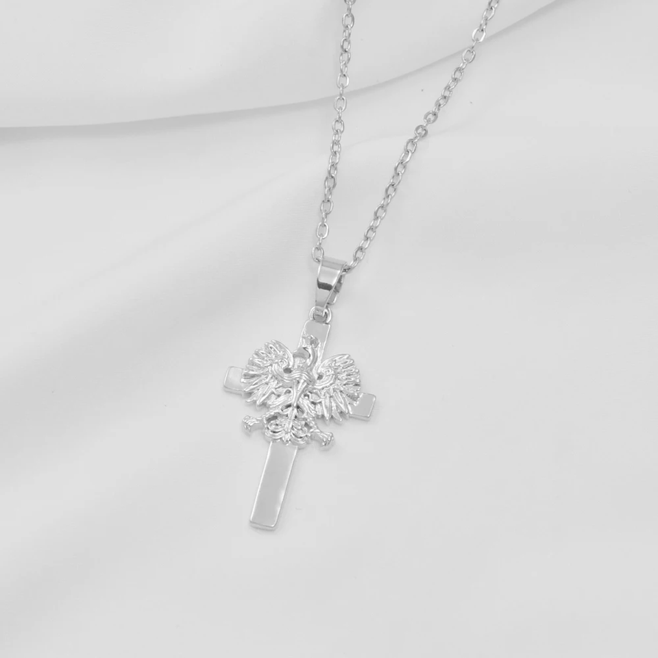 Poland Eagle and Cross Pendant Necklace Polska Poles Jewelry