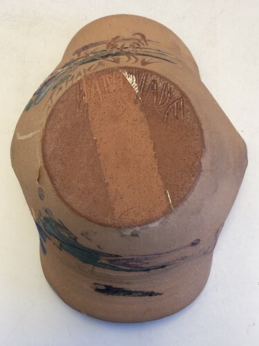Vintage Handmade Pottery Bowl Trinket Dish Signed Made In Jamaica 6” Long Blue