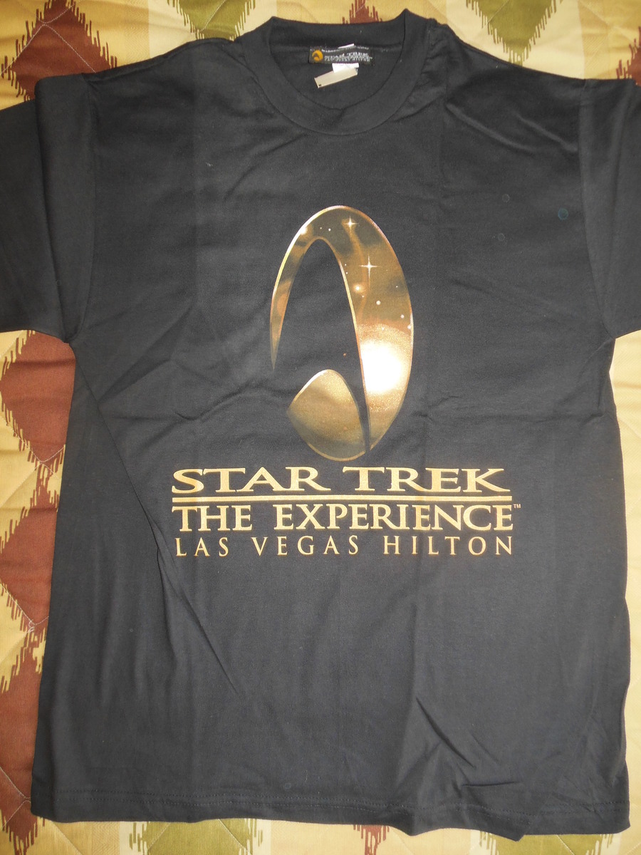 This listing features a STAR TREK EXPERIENCE LAS VEGAS HILTON COMMEMORATIVE T-SHIRT Adult Size L. Brand new condition! Never worn! Fromt has the Star Trek Experience detail on it, the back has the "stardate" of the "maiden voyage". Great item for any Star Trek fan!