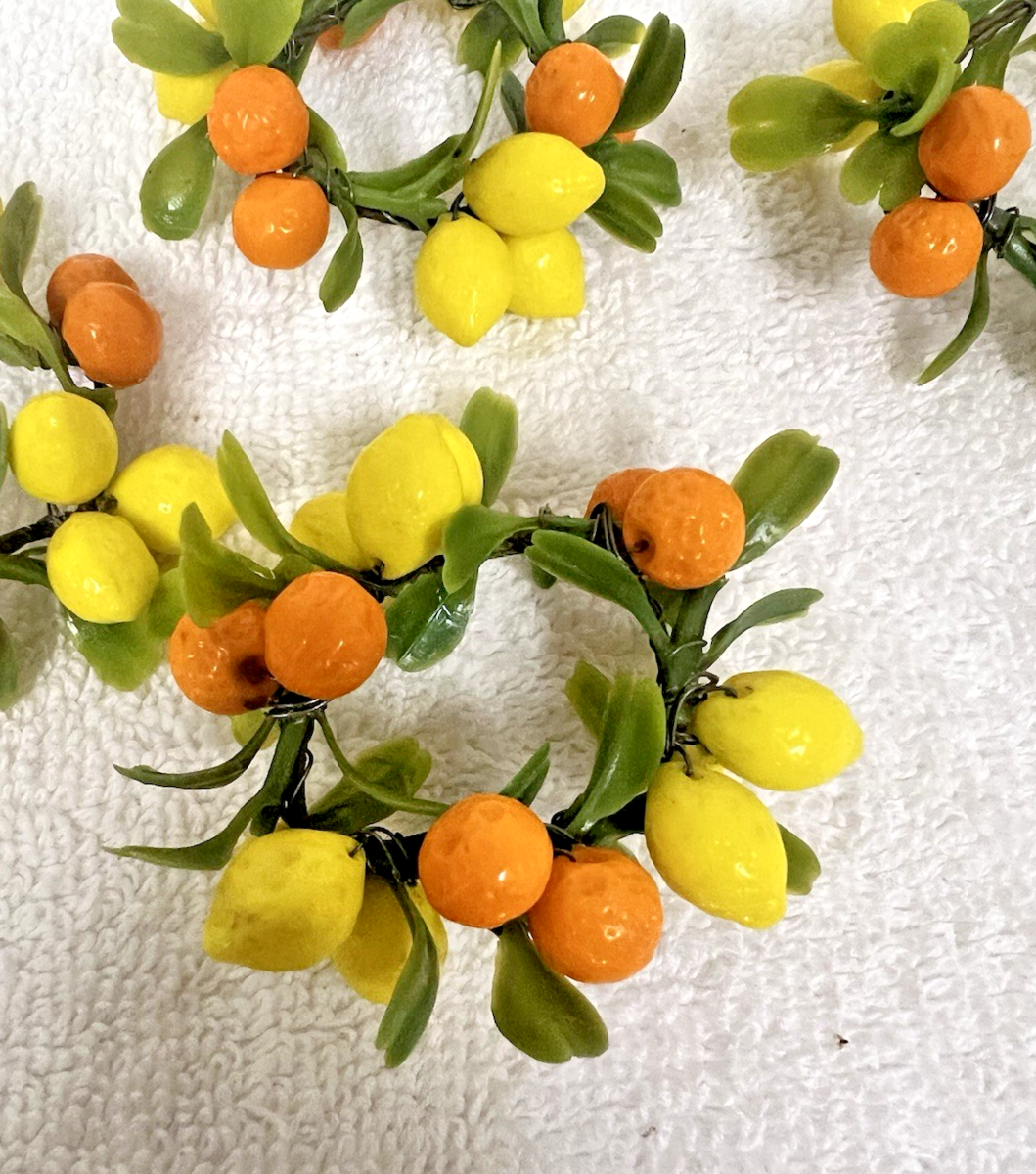 4 Vintage Glass Lemons & Oranges Napkin Ring Holder Wine Country Party Decor